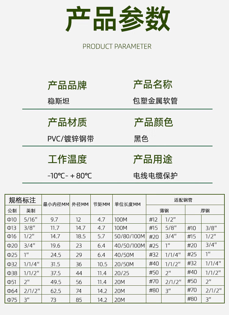 稳斯坦 包塑金属软管 WT-270 Φ16mm*100m 1卷