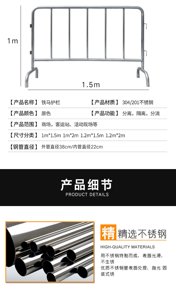 金诗洛 不锈钢铁马护栏 KSX001 201不锈钢 1.2*2m 1个