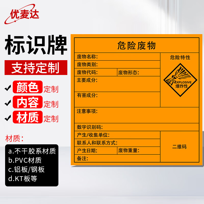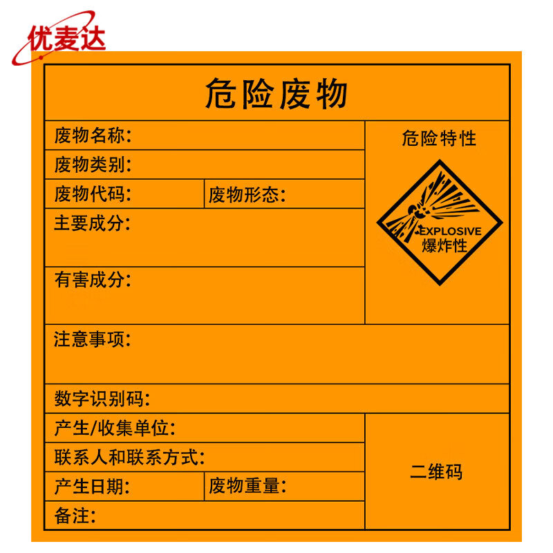 • 商品名称:优麦达 危险废物标识不干胶贴纸