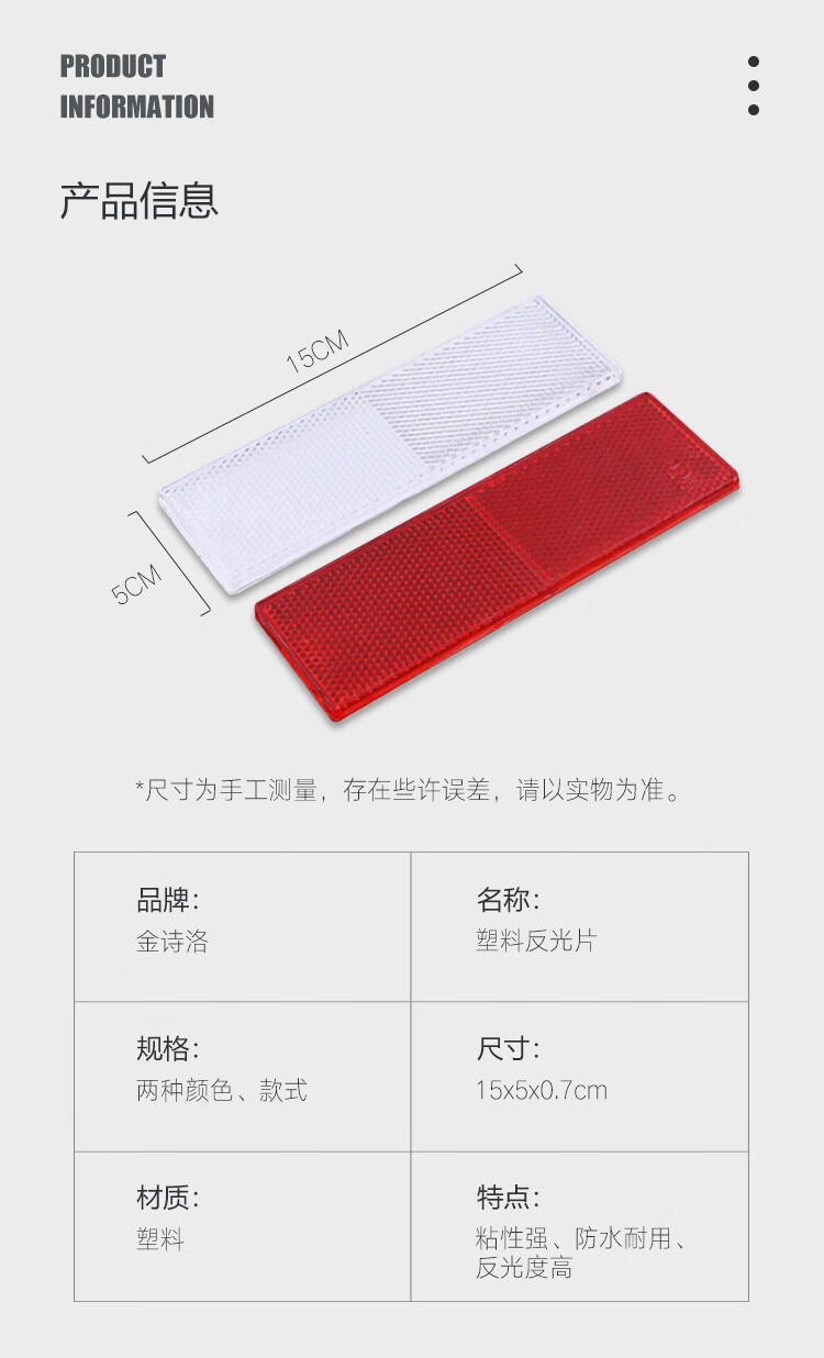 金诗洛 塑料反射器 车身反光贴 KSL274 无孔款 50片 1包