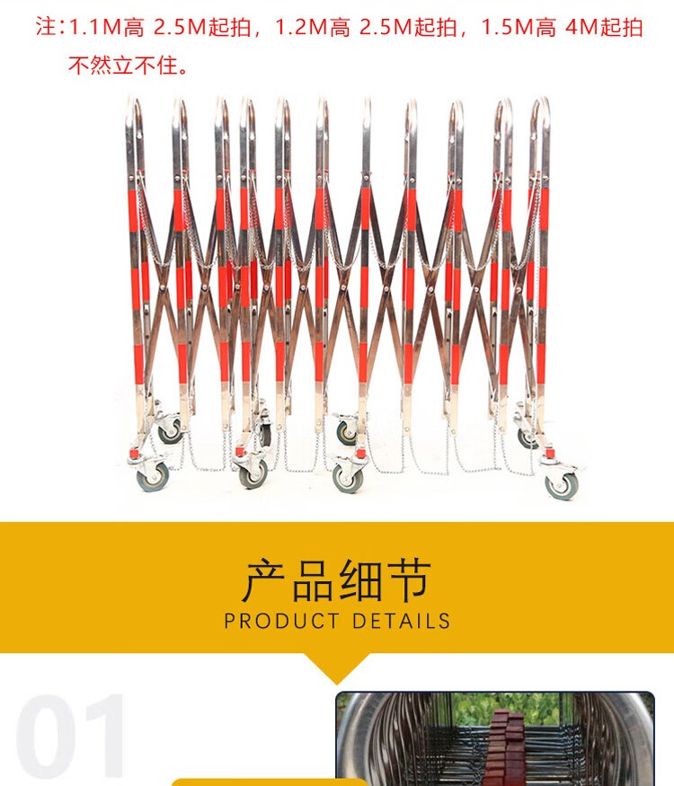 金诗洛 不锈钢滑轮式伸缩围栏 JM0036 1.2*2m 1个