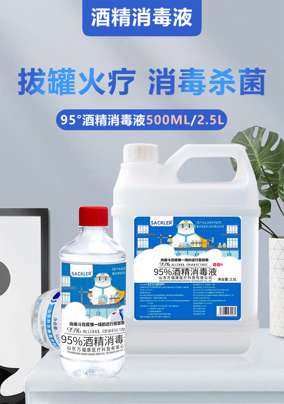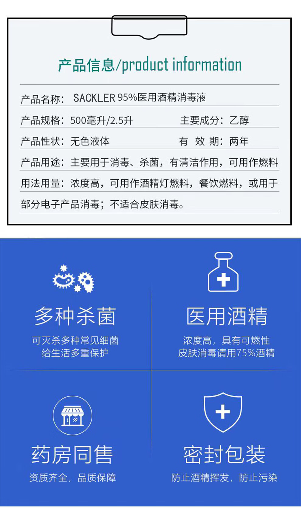 SACKLER 95%医用酒精高浓度乙醇消毒液 500ml 1瓶