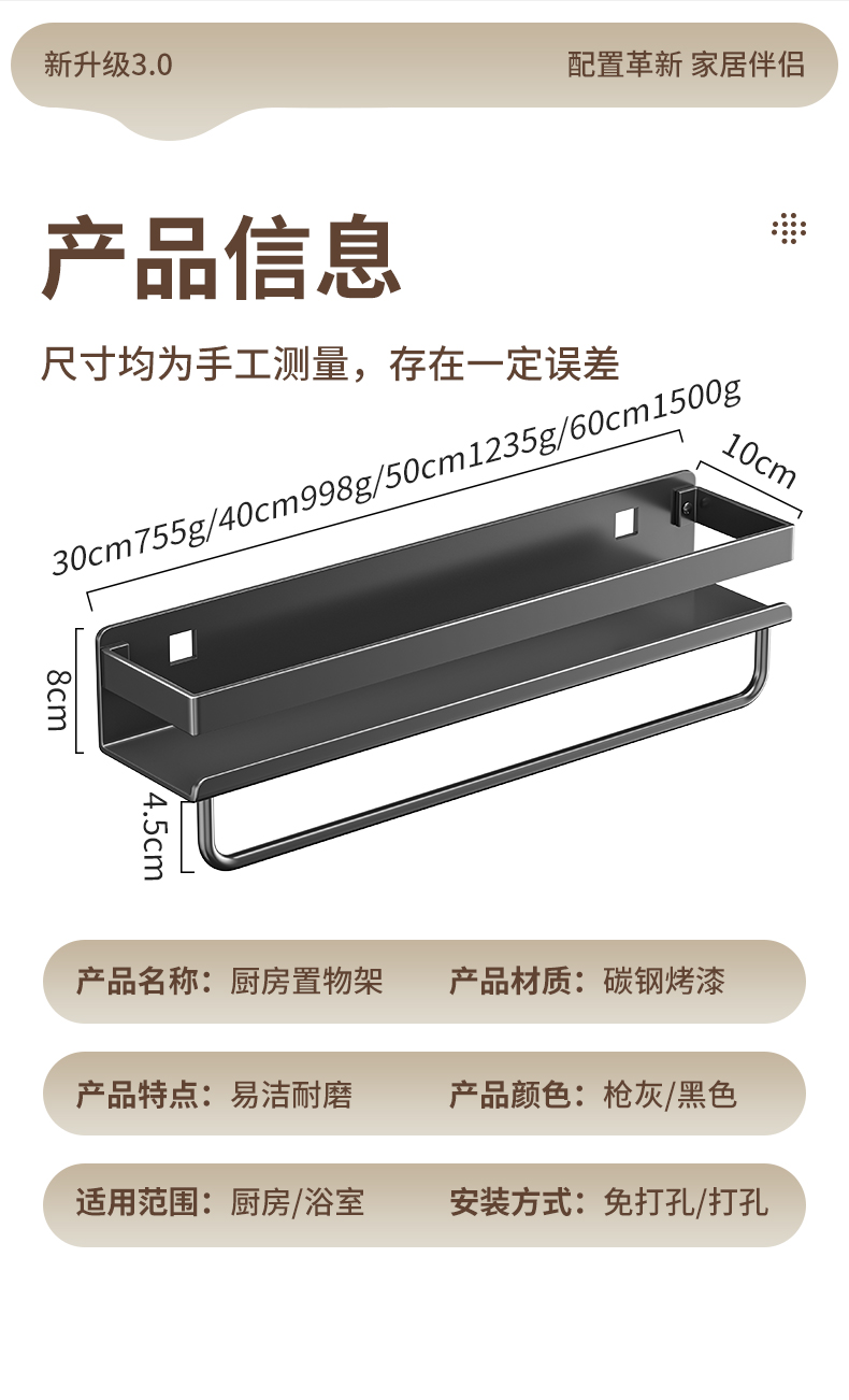 格莱诗丹 厨房用品置物架 60×10×8cm 2个 1套