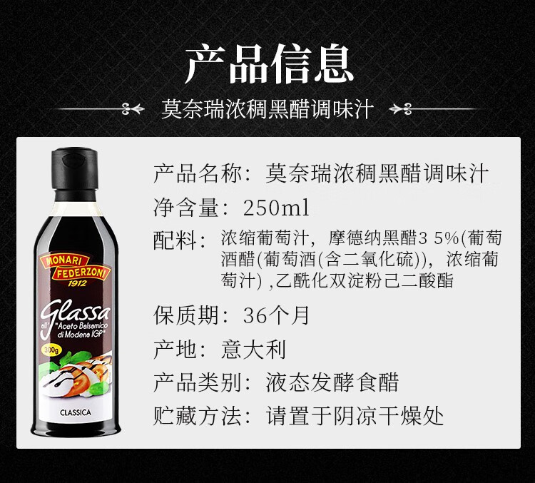莫奈瑞 浓稠黑醋 250ml 2瓶 1件