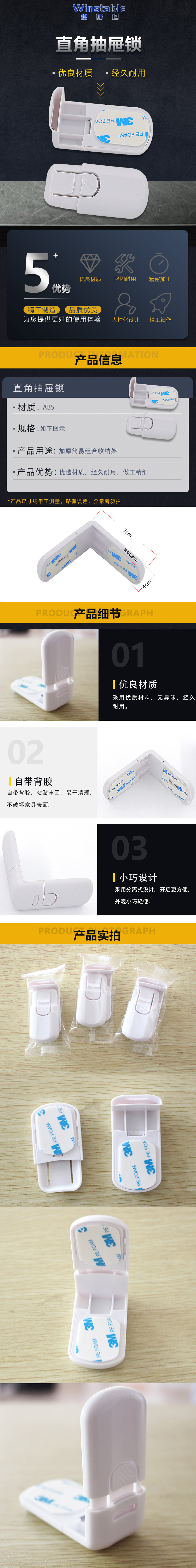 稳斯坦 多功能抽屉直角锁 W7109 白色 2个 1件
