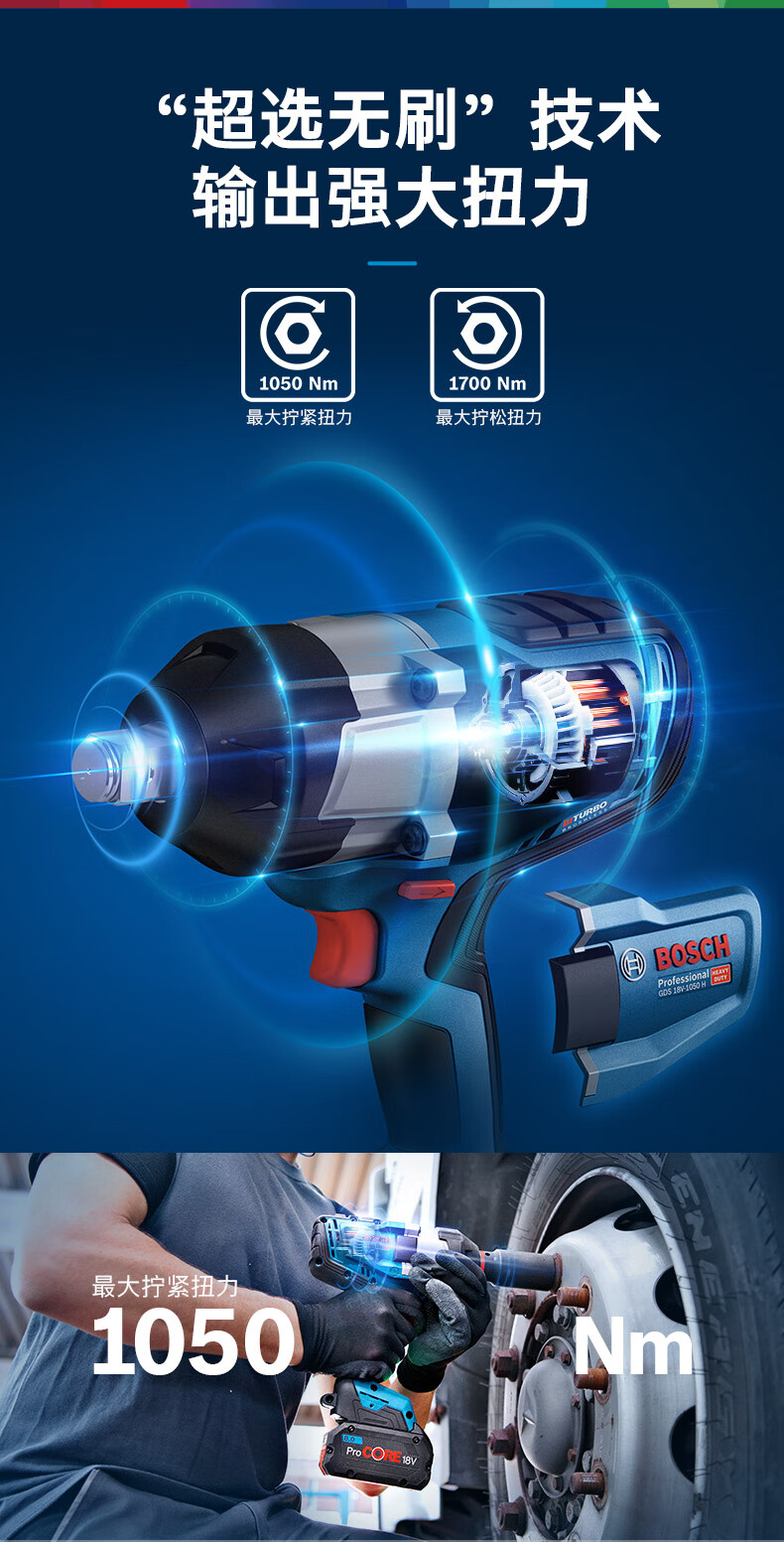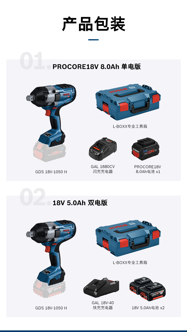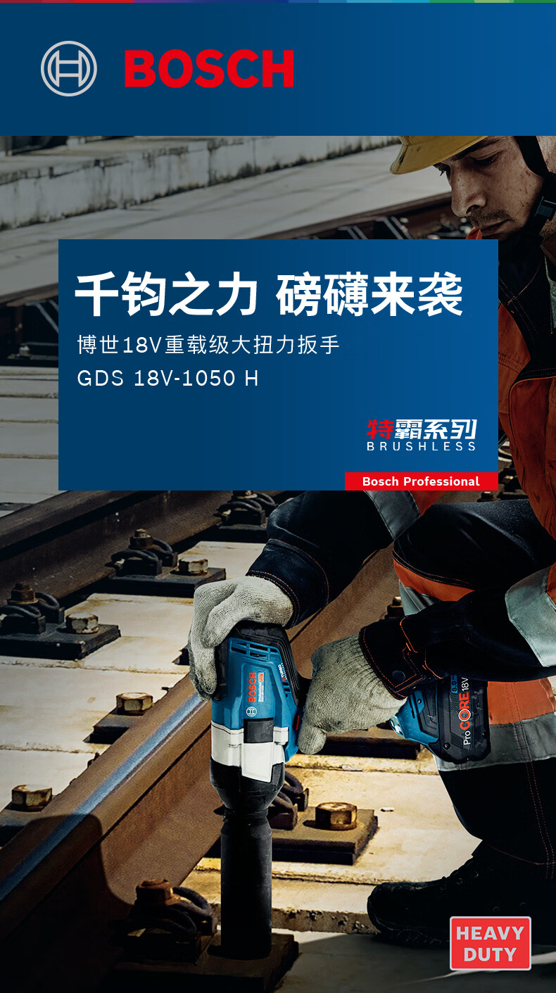 博世 充电式重型大扭力扳手 GDS 18V-1050H 18V 5.0Ah 两电一充 1台