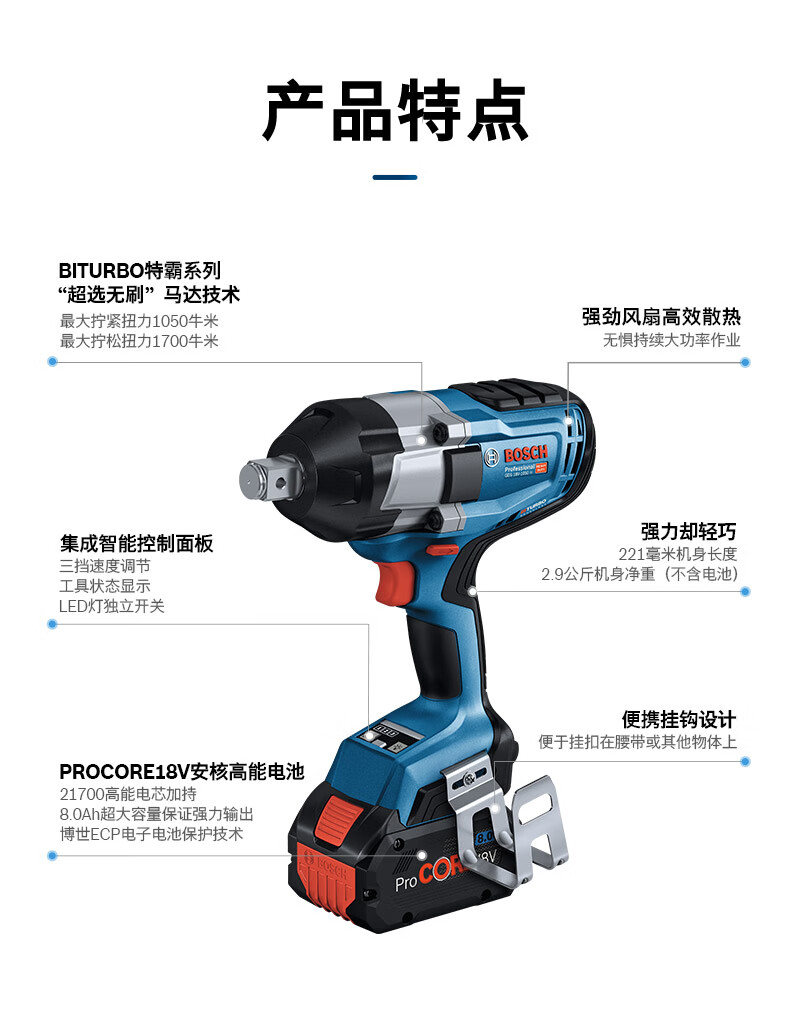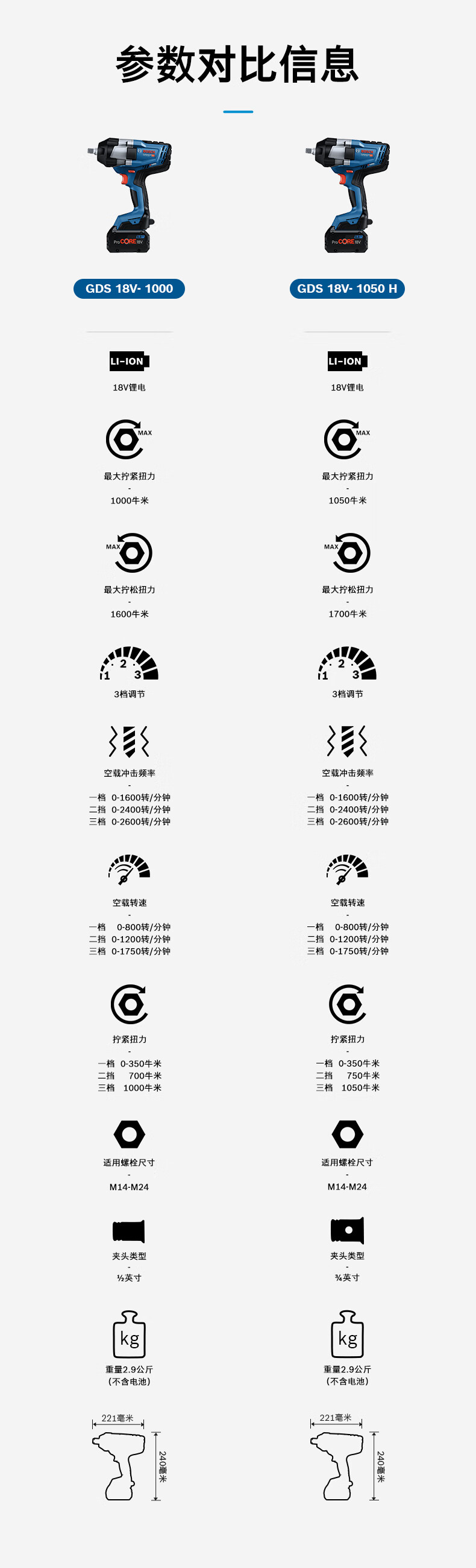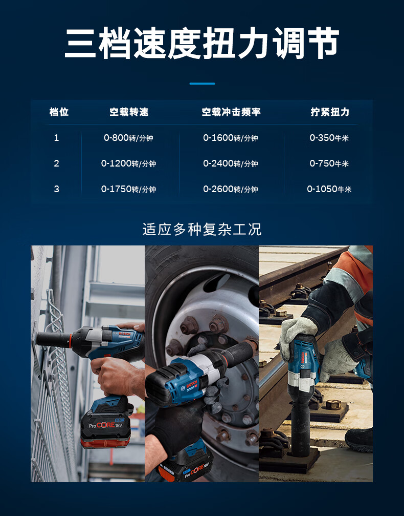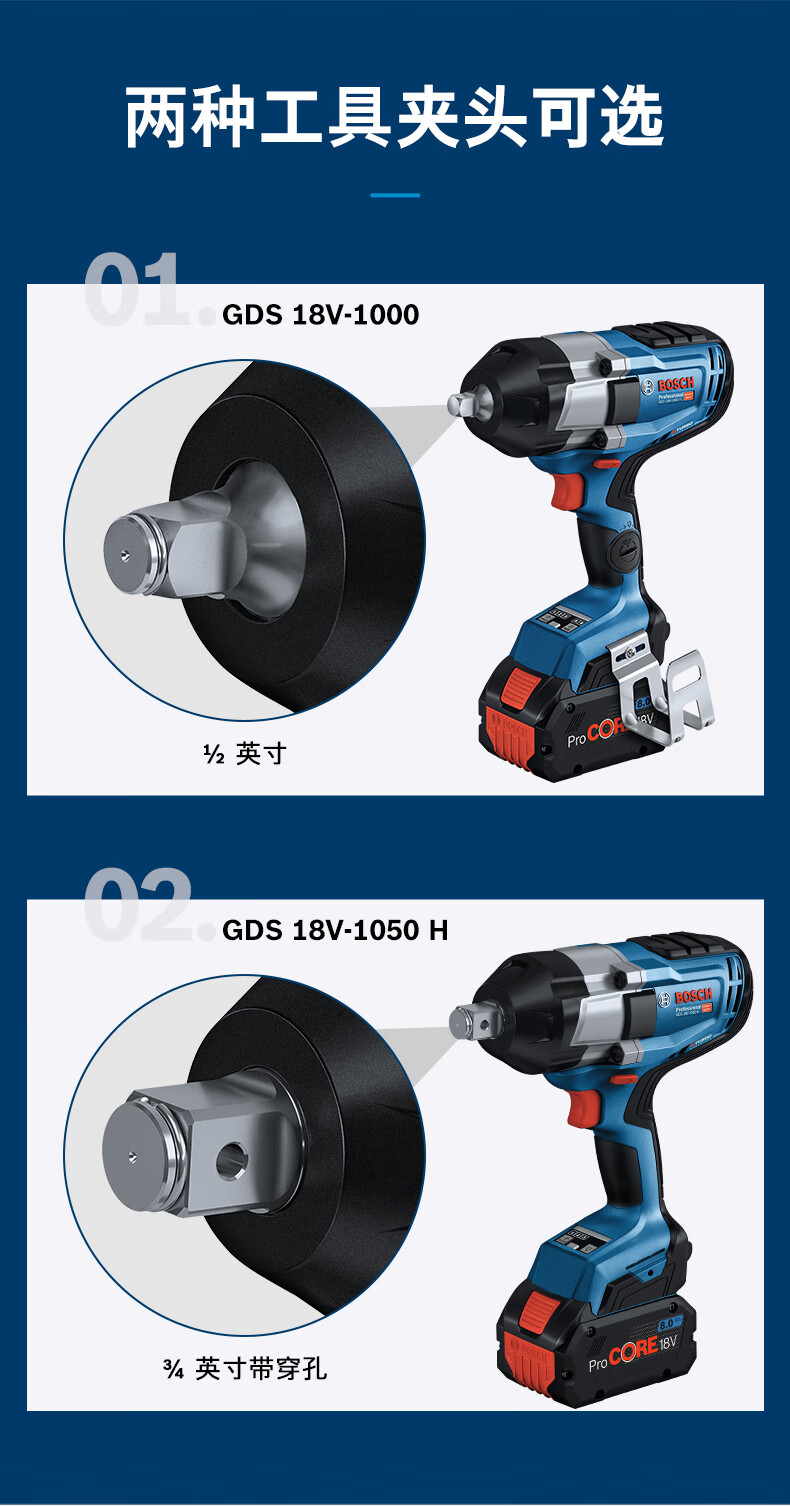 博世 充电式重型大扭力扳手 GDS 18V-1050H 18V 5.0Ah 两电一充 1台
