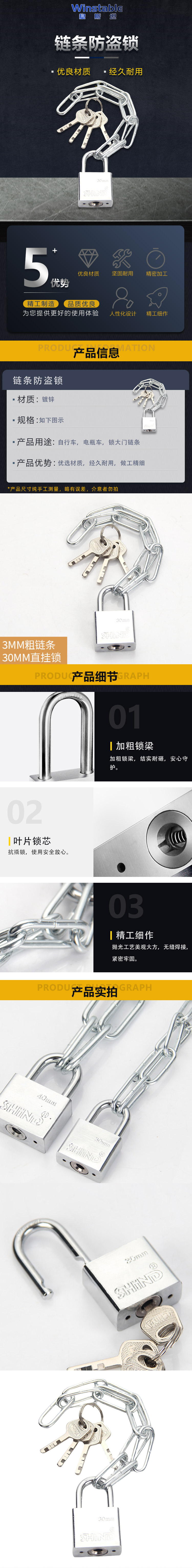 稳斯坦 链条防盗锁 W7452 链长0.5m 1套