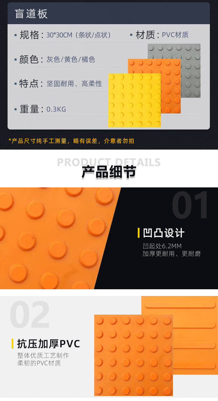 稳斯坦 PVC盲道板 W220 30cm黄色波点 1个