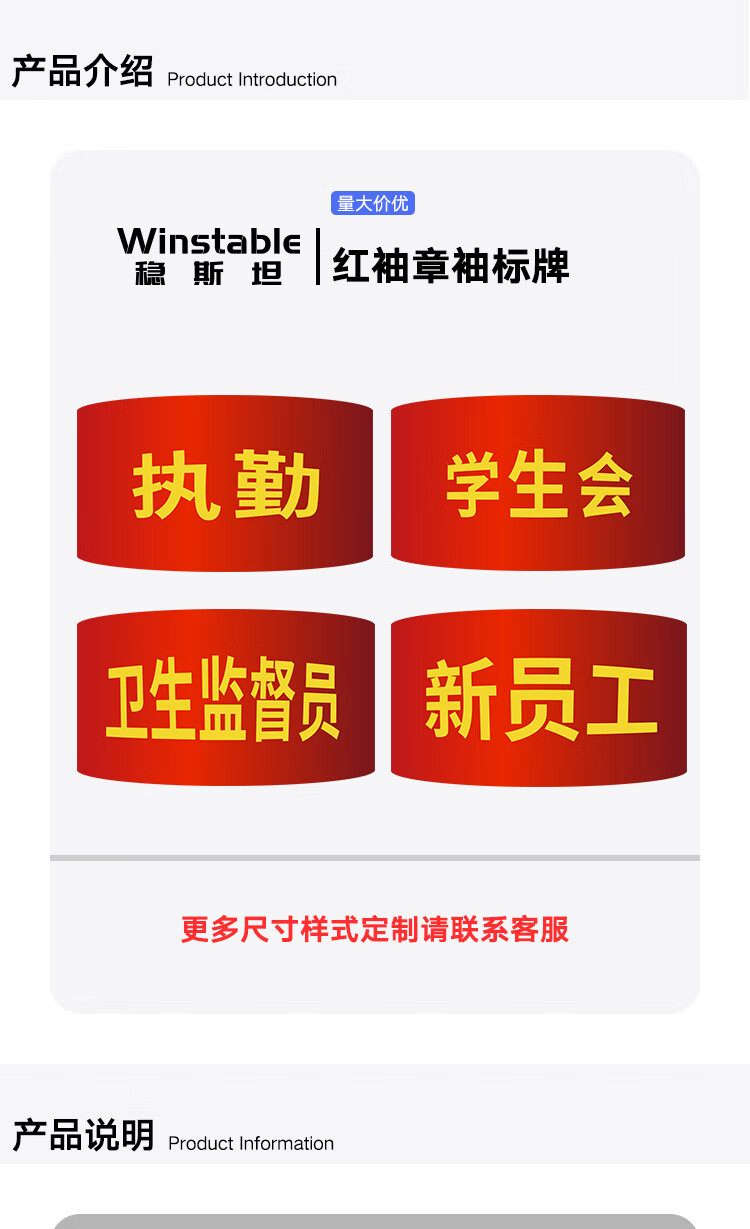 稳斯坦 红袖章袖标牌 WST3004 (文明劝导5个) 5个 1包