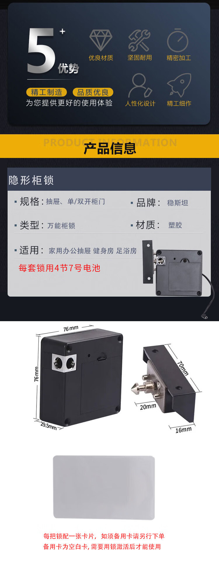 稳斯坦 电子密码卡 W914 额外备用卡一张 1张