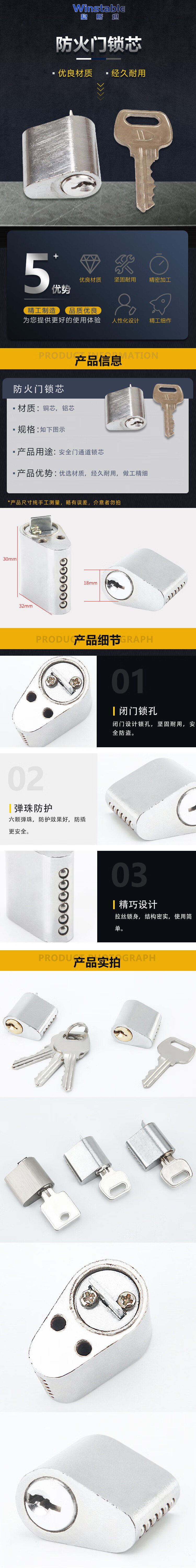 稳斯坦 防火门锁芯 W7036 铜芯不互开(2个) 2个 1件
