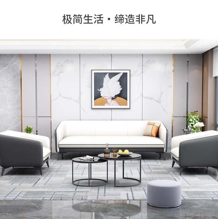 居寓 办公室沙发茶几套装 单人位*2+三人位+岩板茶几 1套