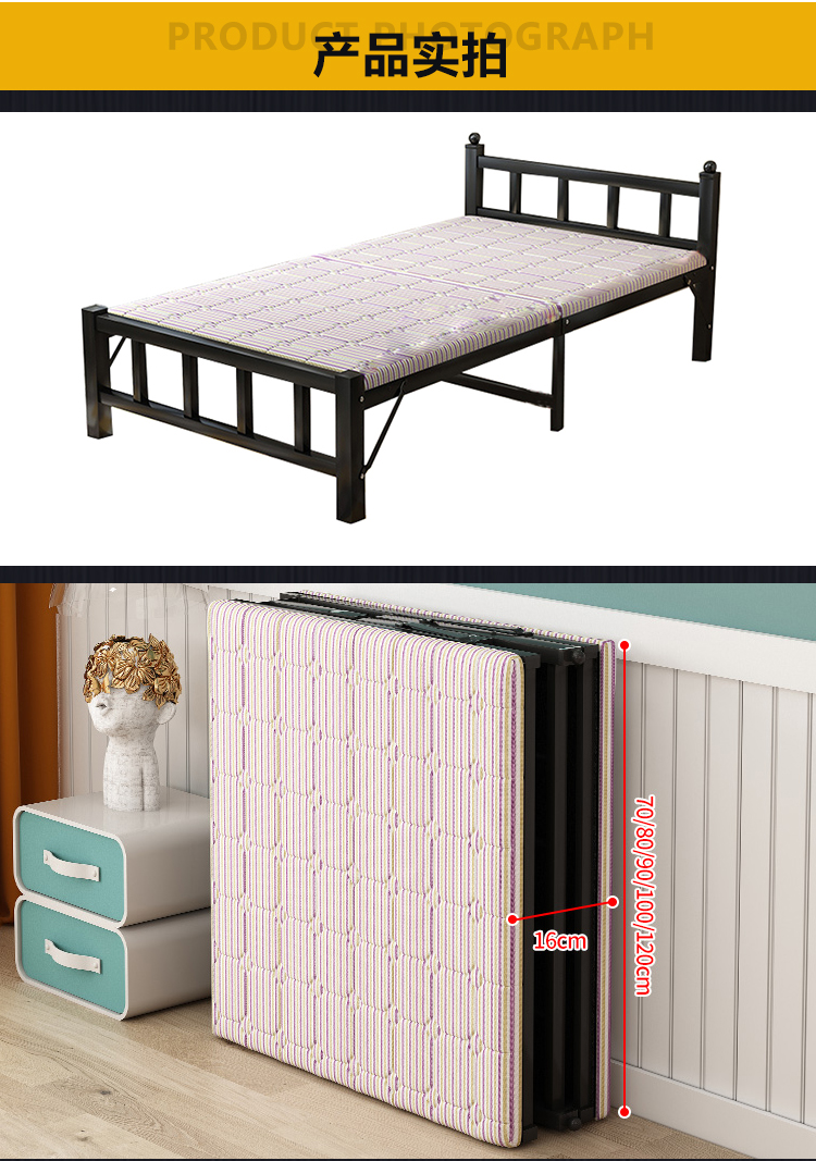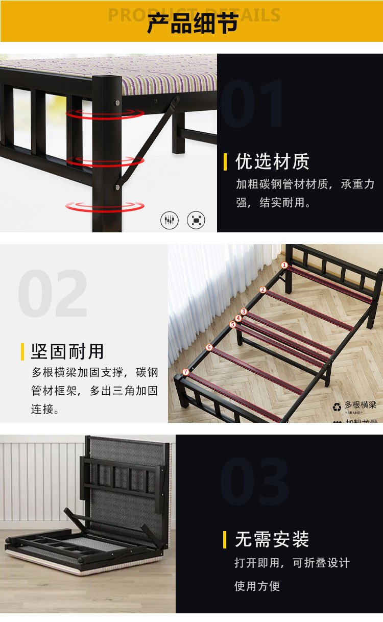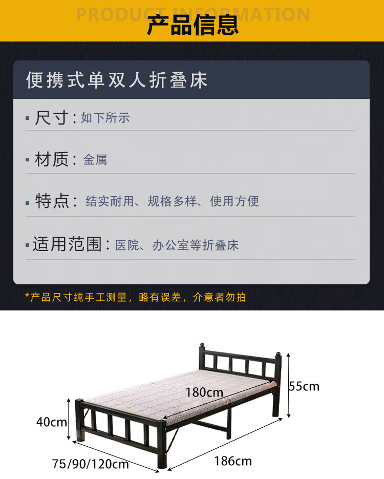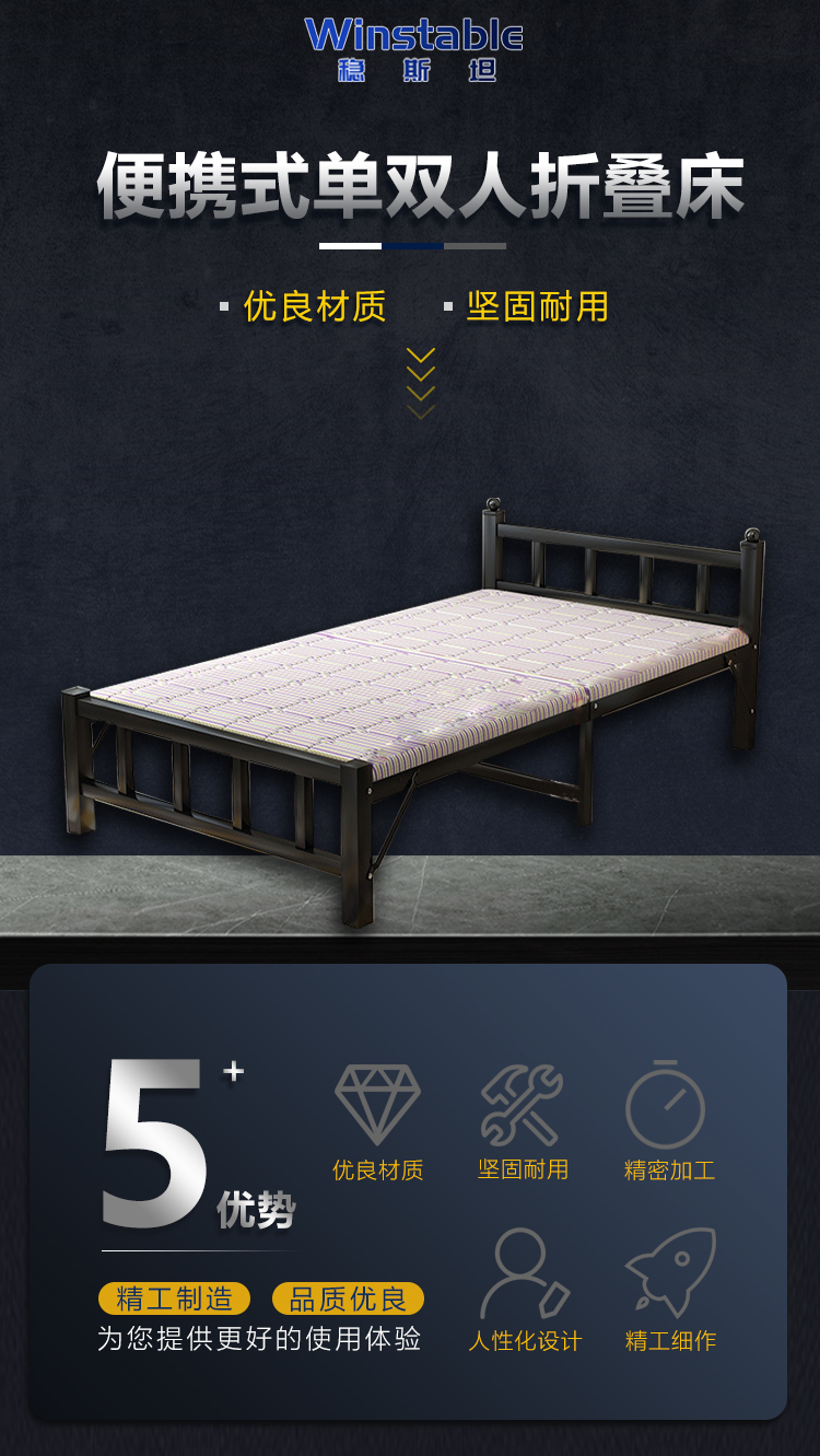 稳斯坦 便携式单双人折叠床 W7384 黑管银灰条186*90cm 1个