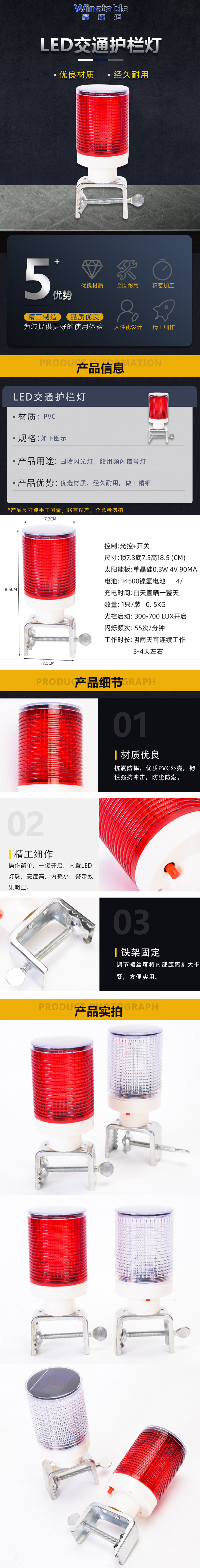 稳斯坦 LED交通护栏灯 W7472 红色 1个