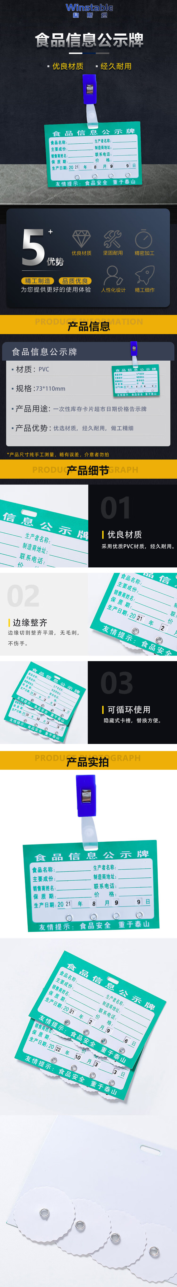 稳斯坦 食品信息公示牌 W7016 PVC卡片+夹子 20个 1件