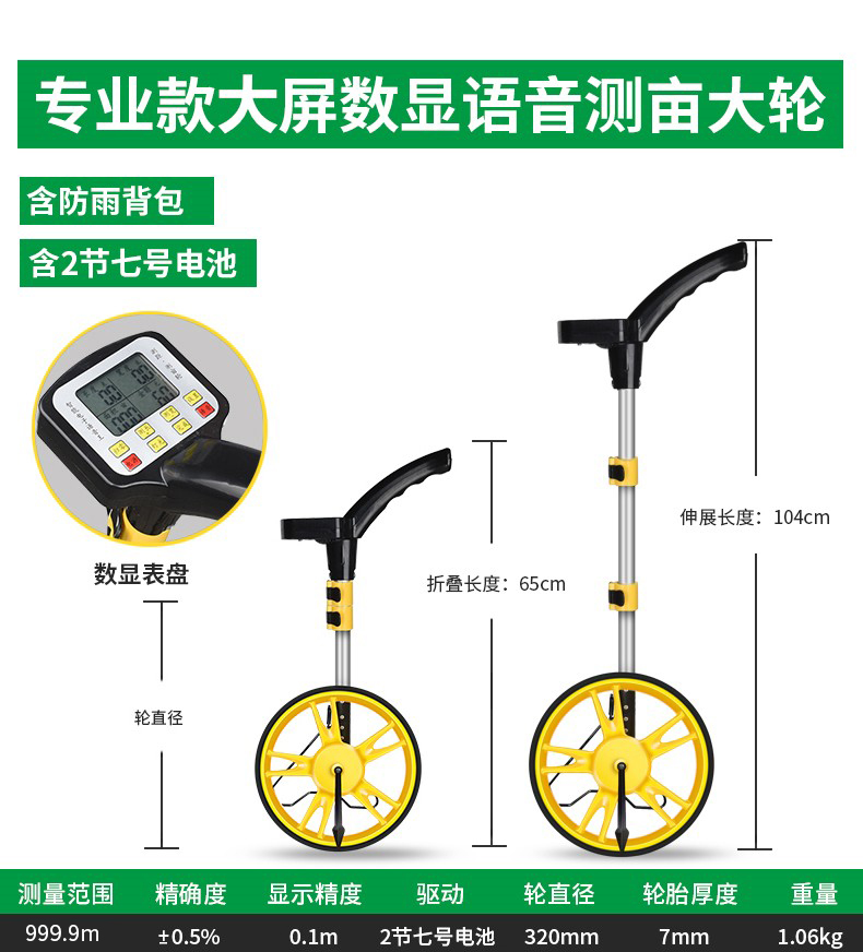 保联 测距仪 999.9m ±0.5% 65-104cm 电子大屏数显大轮 1台