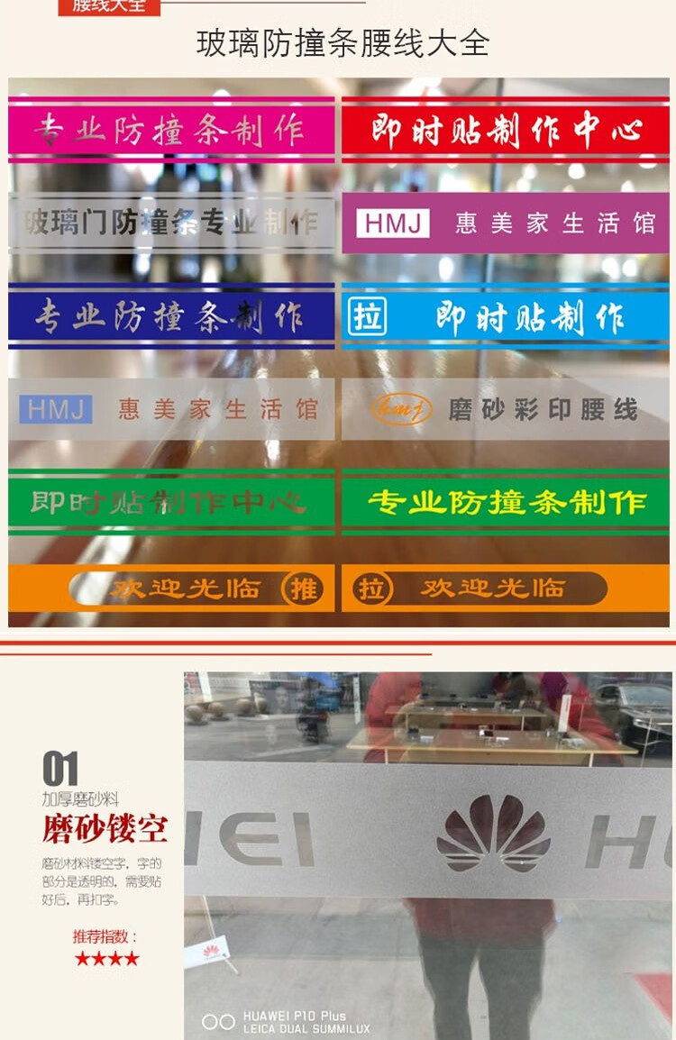 冰禹 防撞条腰线警示贴 BYjq-14 软质PVC背胶 小心玻璃 0.1×150×500mm 1张