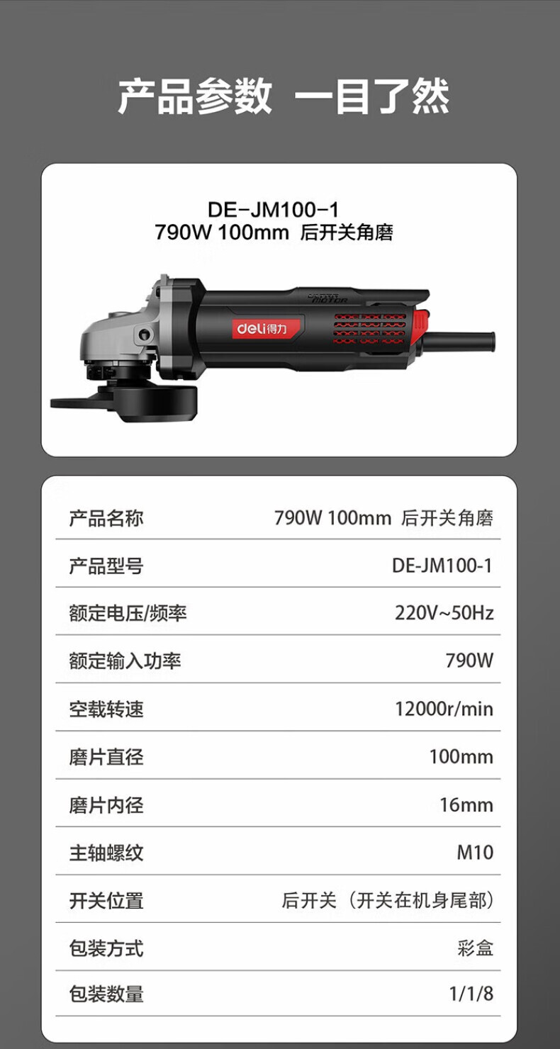 得力 角磨机 DE-JM100-1 790W 红黑色 100mm 1台