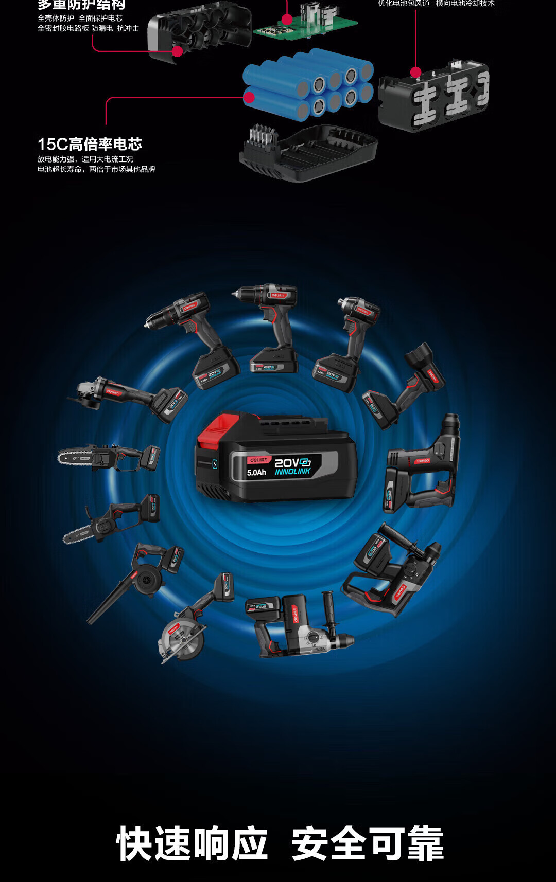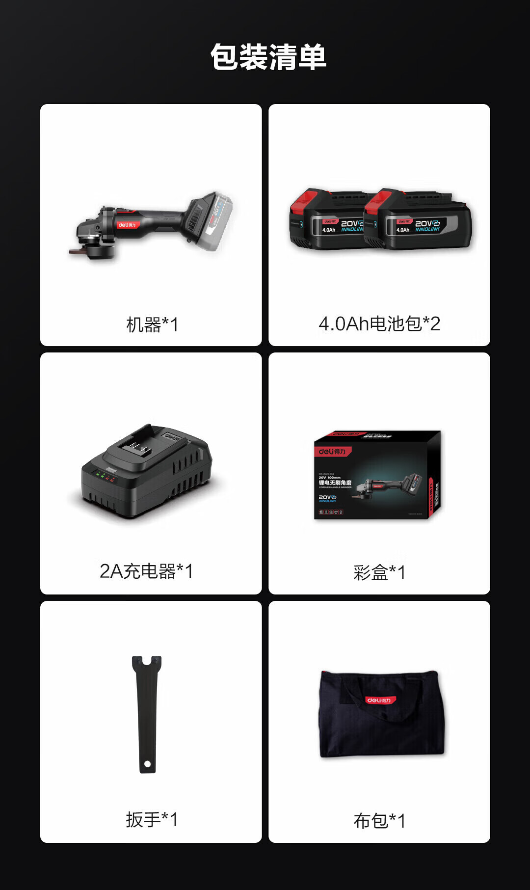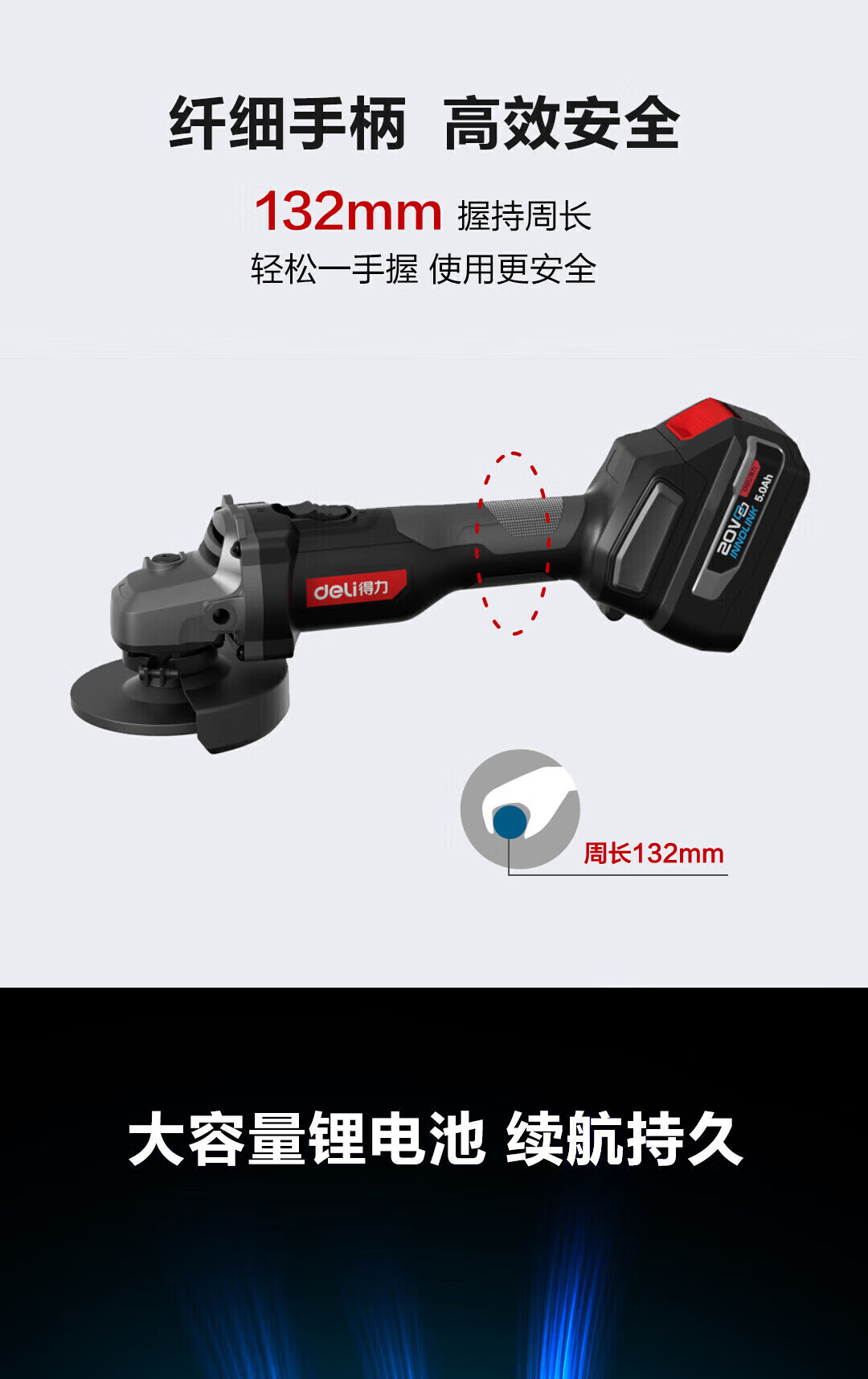 得力 角磨机 DE-JM20-1D4 20V 砂轮片直径100mm 双电4.0Ah 1台