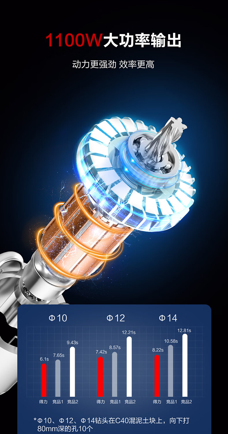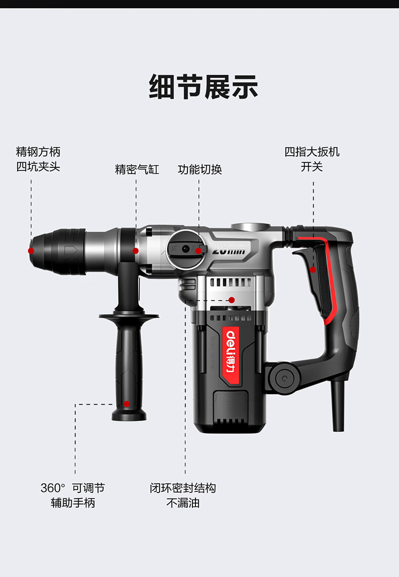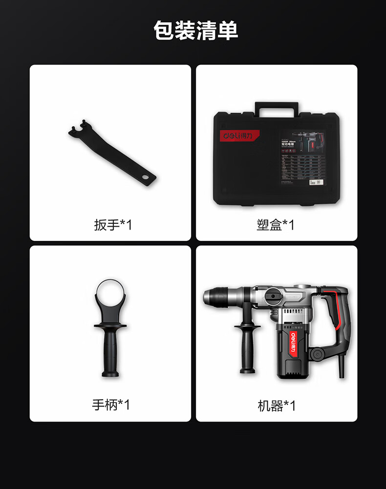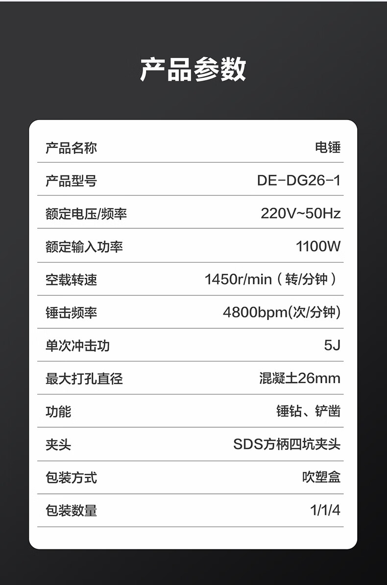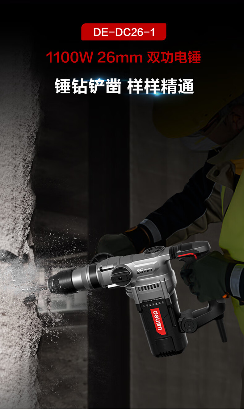 得力 电锤 DE-DC26-1 1100W 最大打孔直径26mm 1把
