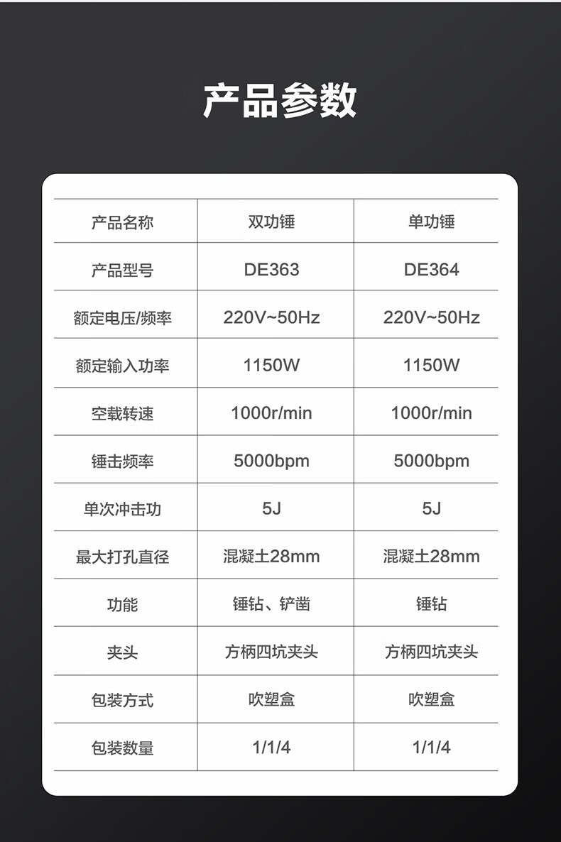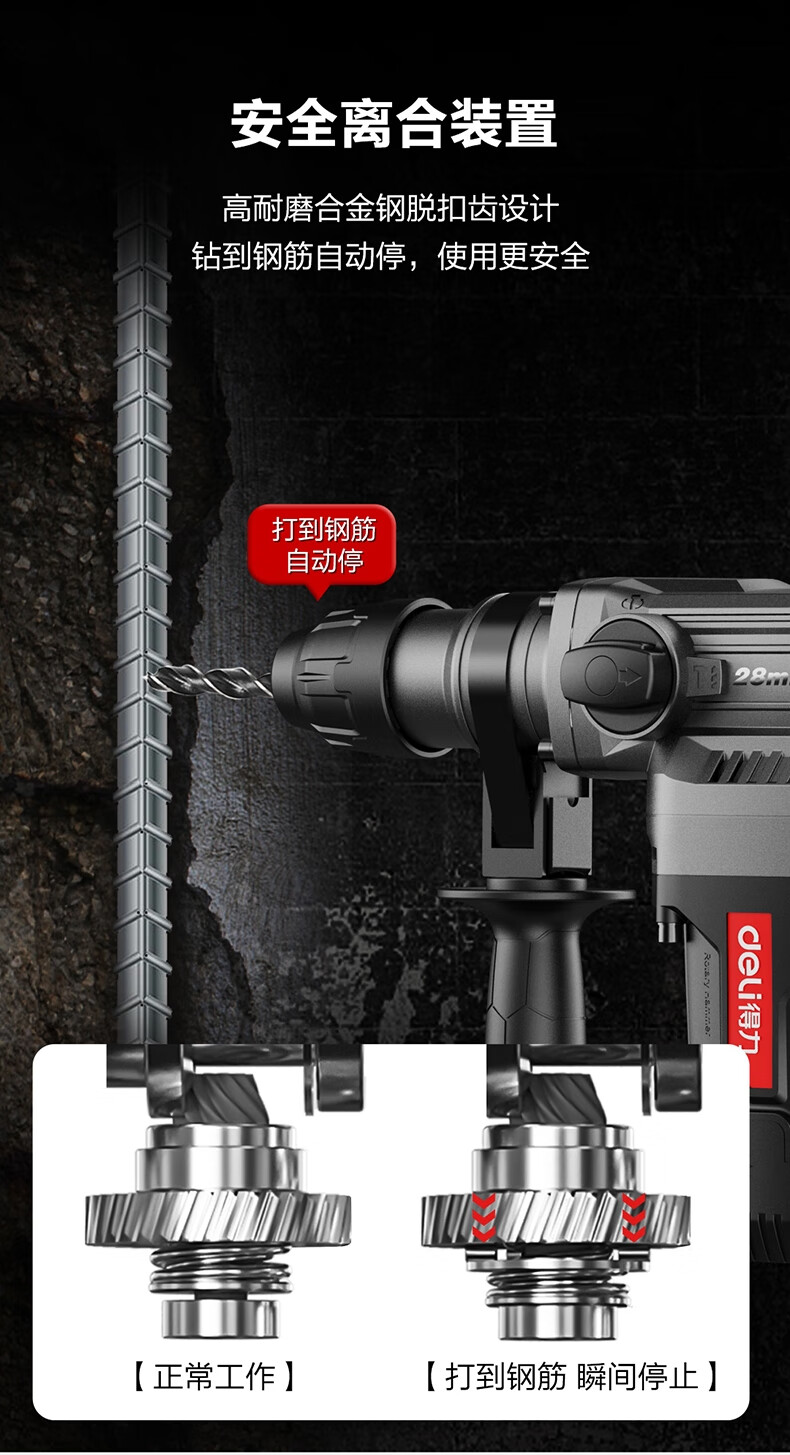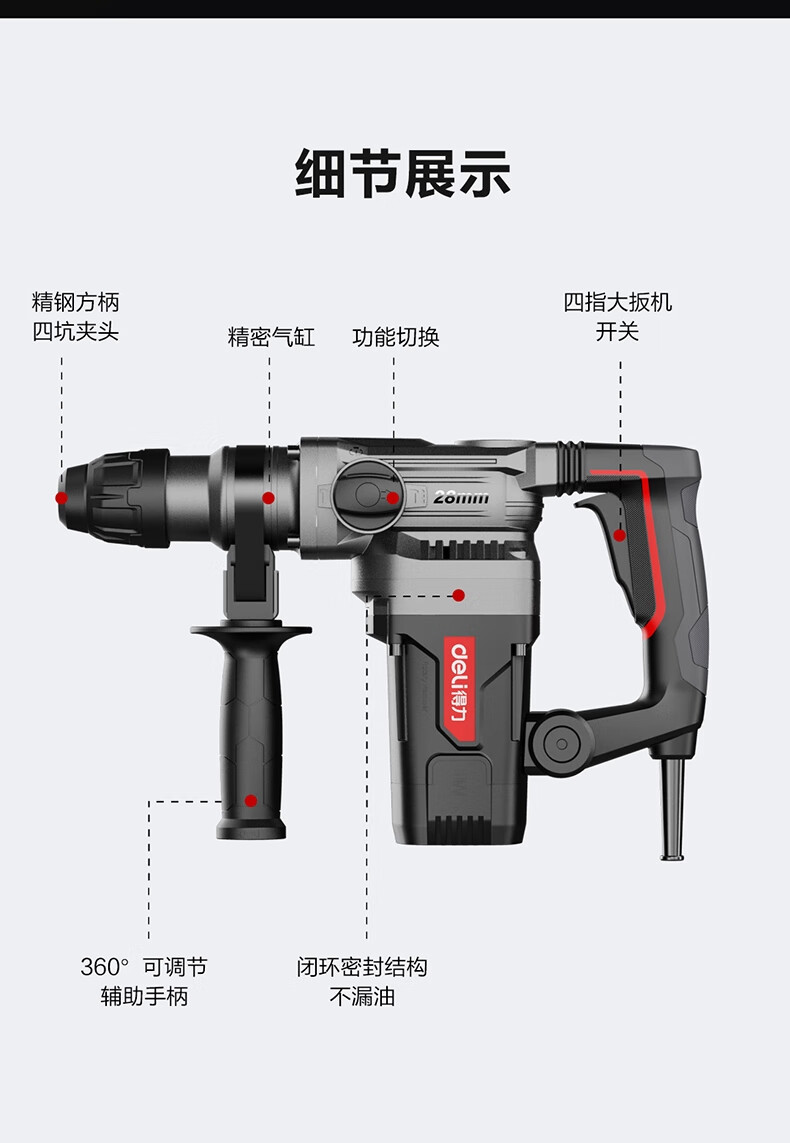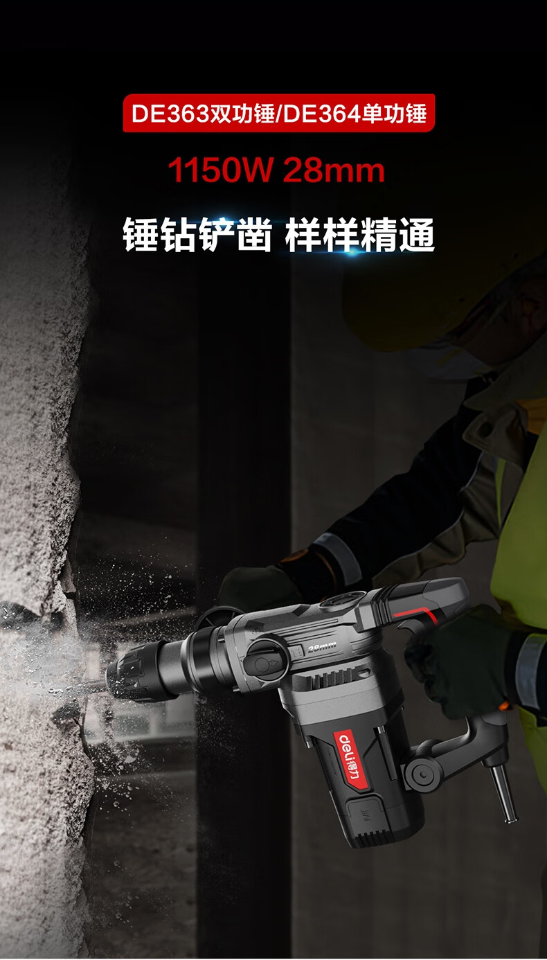 得力 双攻电锤 DE363 1150W 220V 最大打孔直径28mm 1把