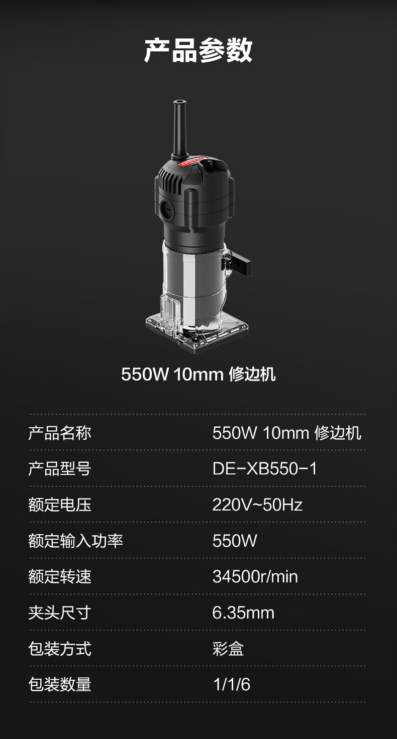 得力 修边机 DE-XB550-1 550W 夹头尺寸6.35mm 1台