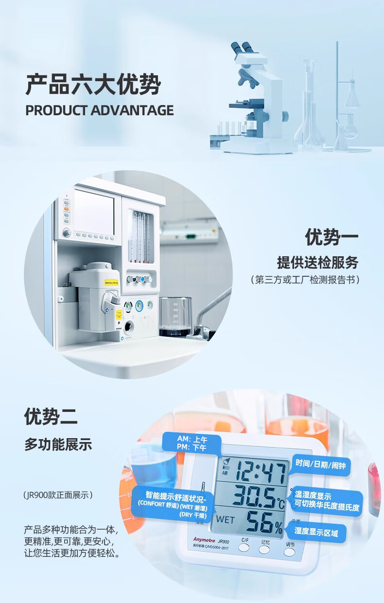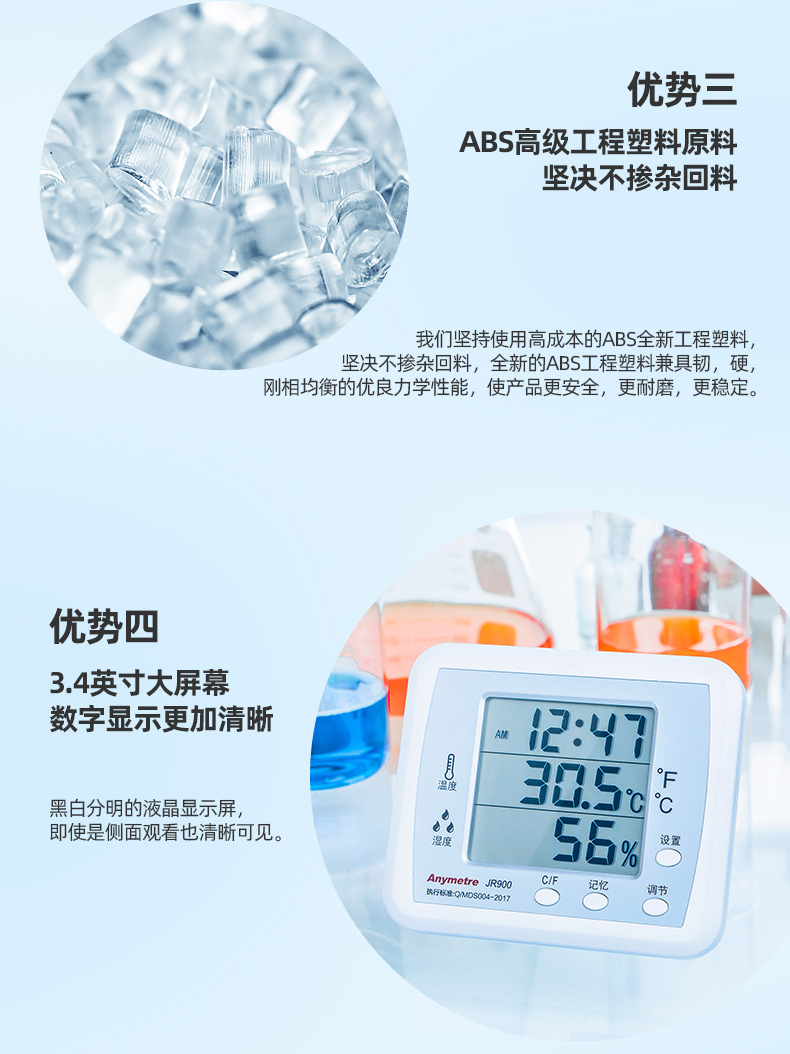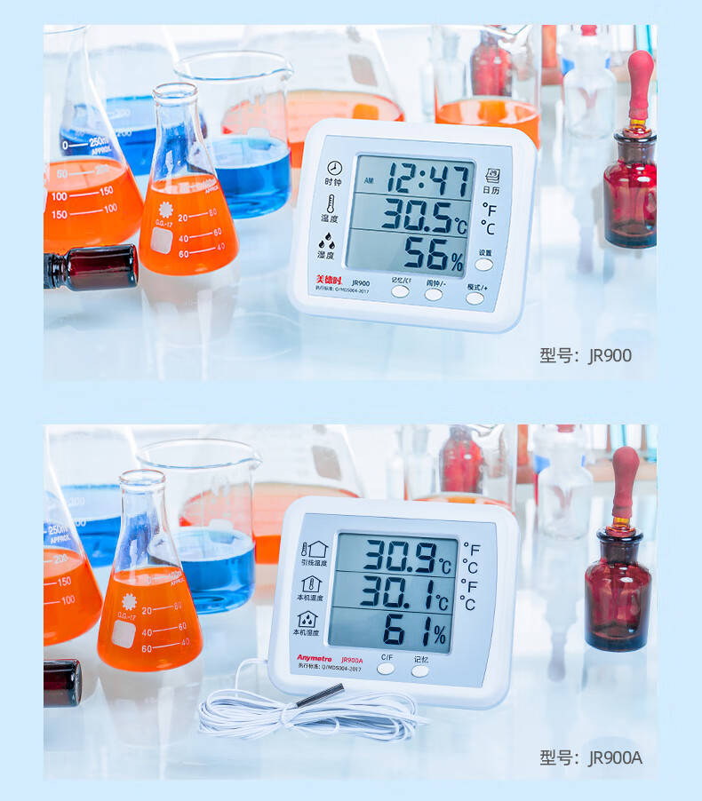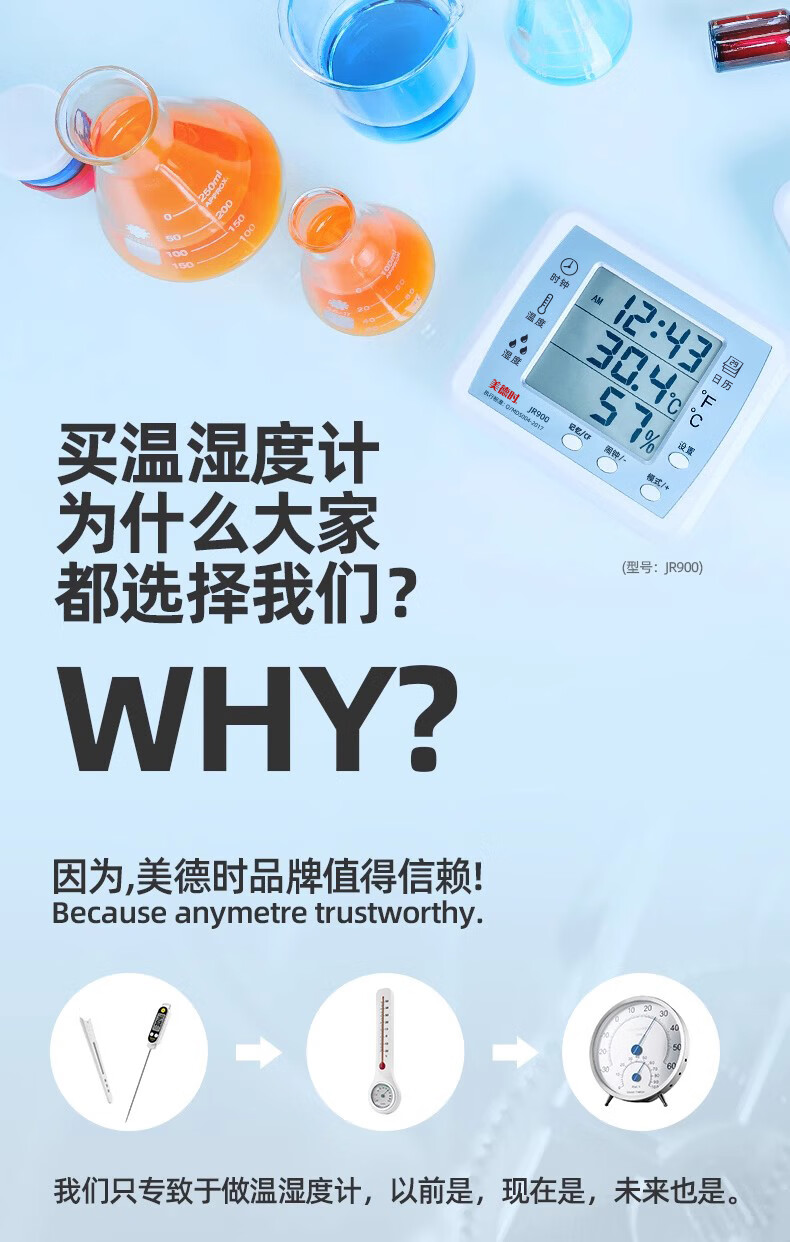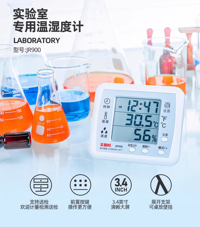 美德时 高精准电子温湿度计 JR900 127×108×19mm ABS 中文 不带探线款 1台