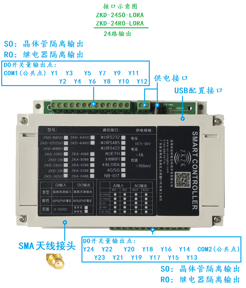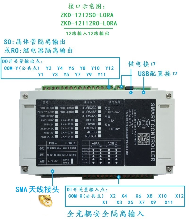 综科智控 无线io模块 ZKD-8I8RO-LORA 8输入+8输出 1件