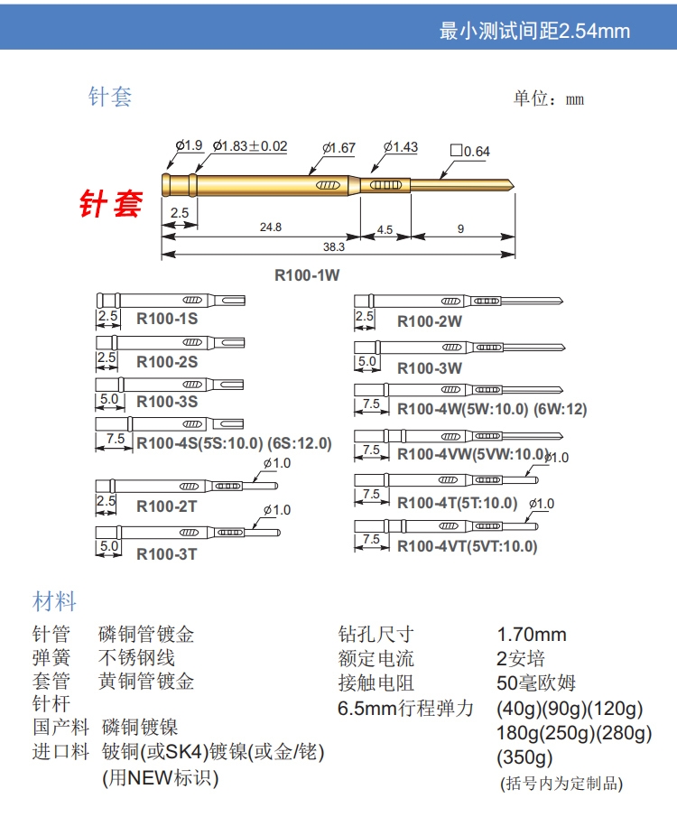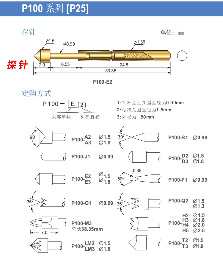 华荣 探针 PA100-A2 凹头1.5 100根 1包