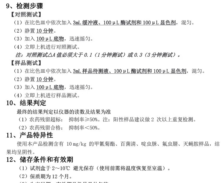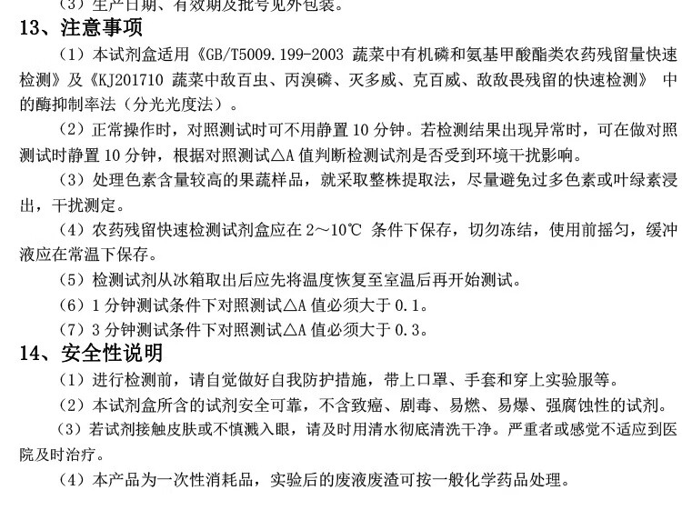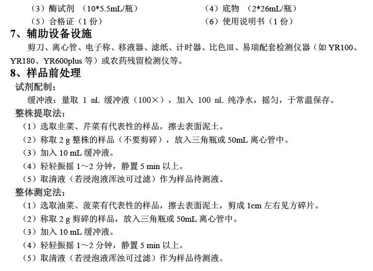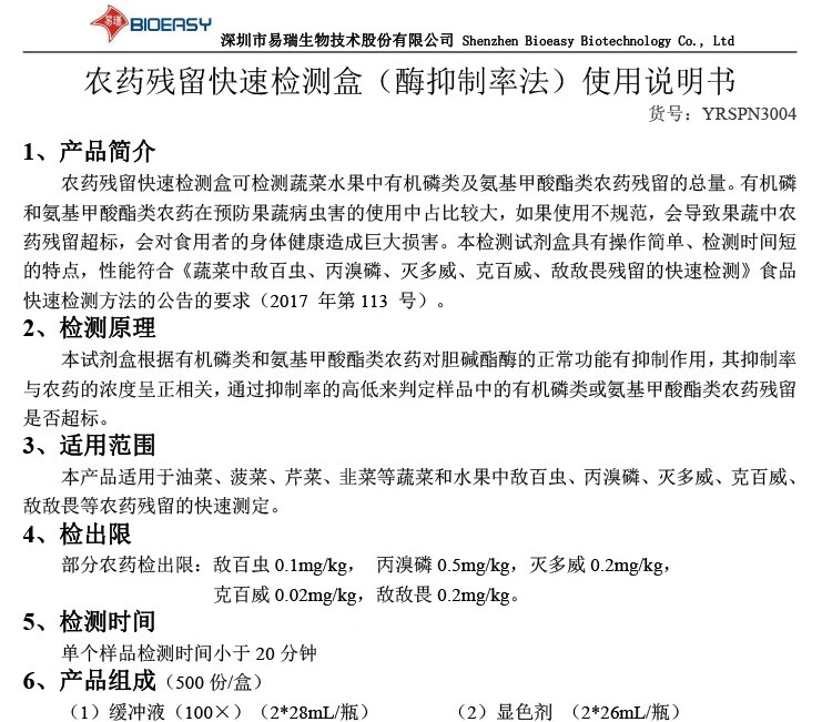 易瑞生物 农药残留快速检测盒 YRSPN3004 有机磷和氨基甲酸酯类农药检测 500样 1盒