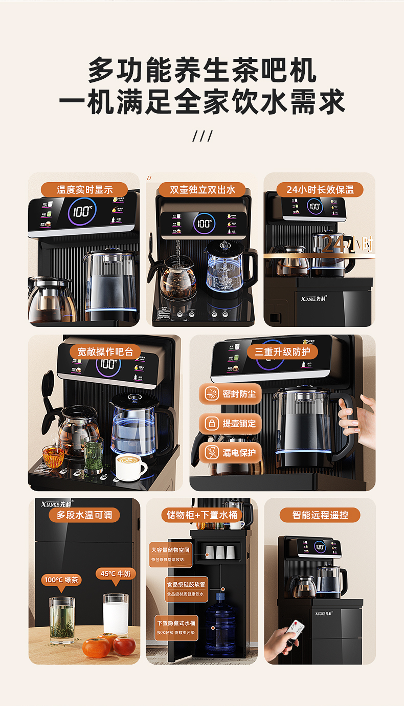 先科 智能语音茶吧机 DMH-AK-7606 黑色 双出水 遥控-防烫壶 1台