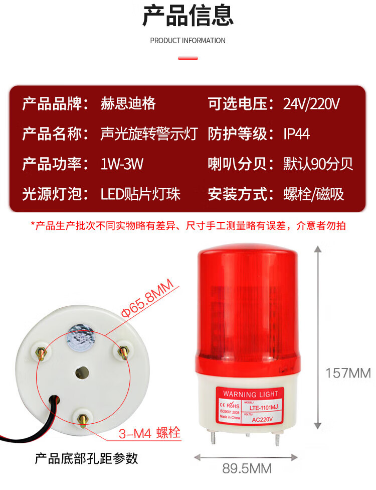 赫思迪格 红色旋转警示灯 HGJ-77 220V 螺丝式 1个