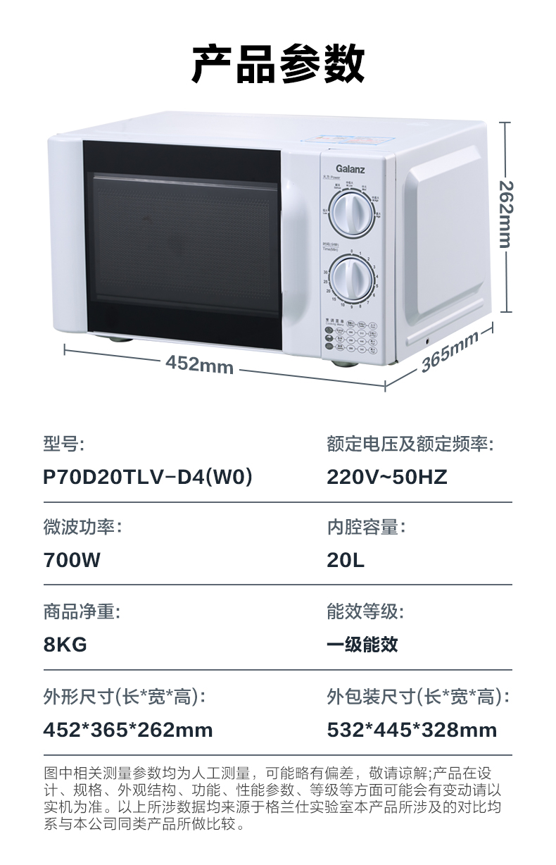 格兰仕 微波炉 P70D20TLV-D4(WO) 白色 转盘式 1台