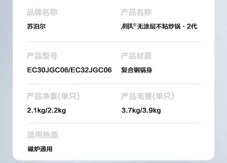 苏泊尔 炒锅 EC30JGC06 钛 不粘锅 少油烟 32cm 1个
