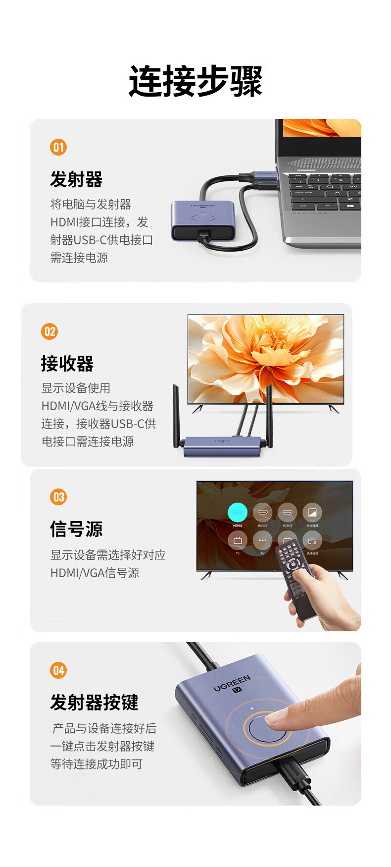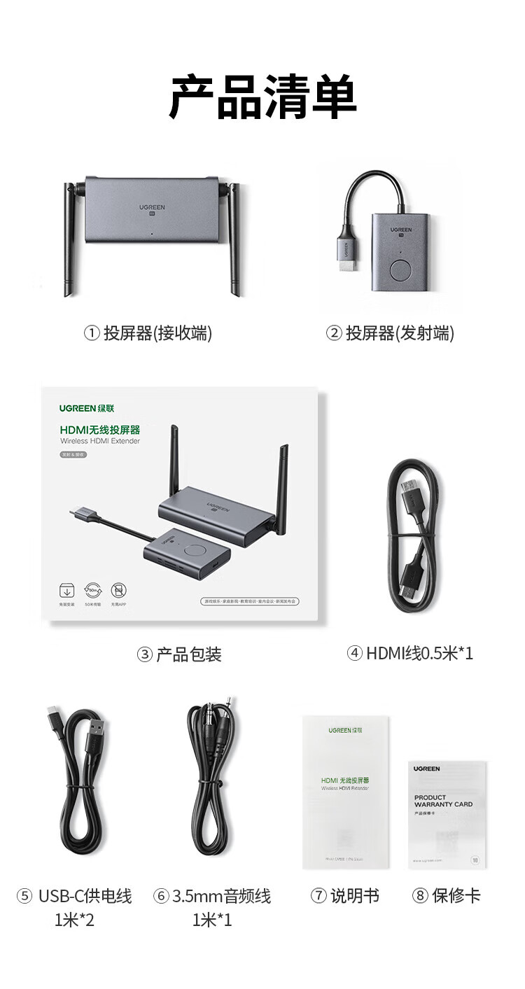 绿联 点对点HDMI无线投屏器 CM506 接口 USB-C 1个