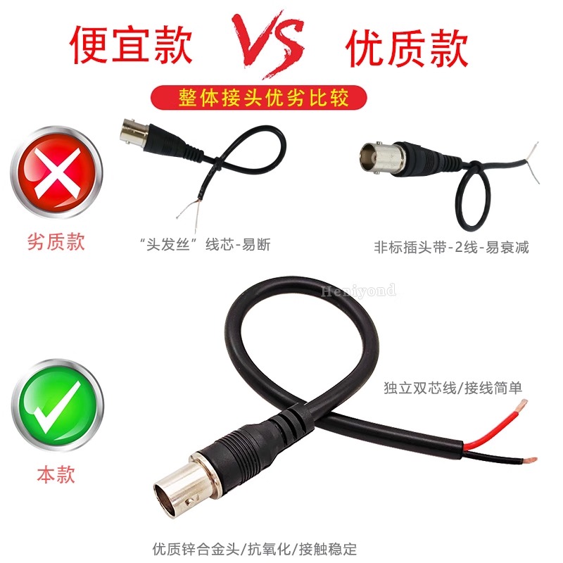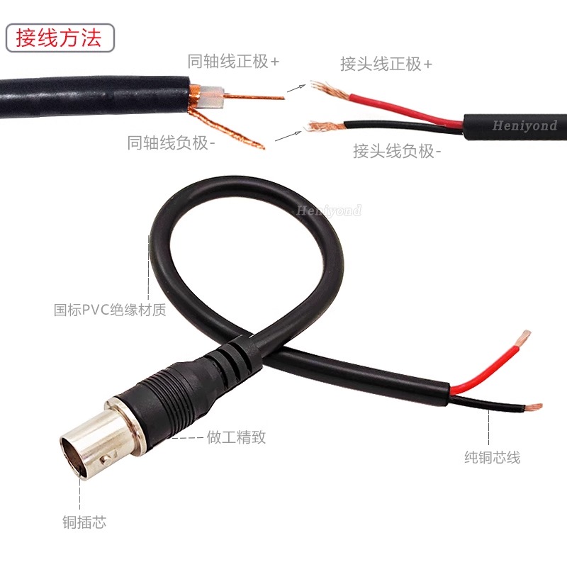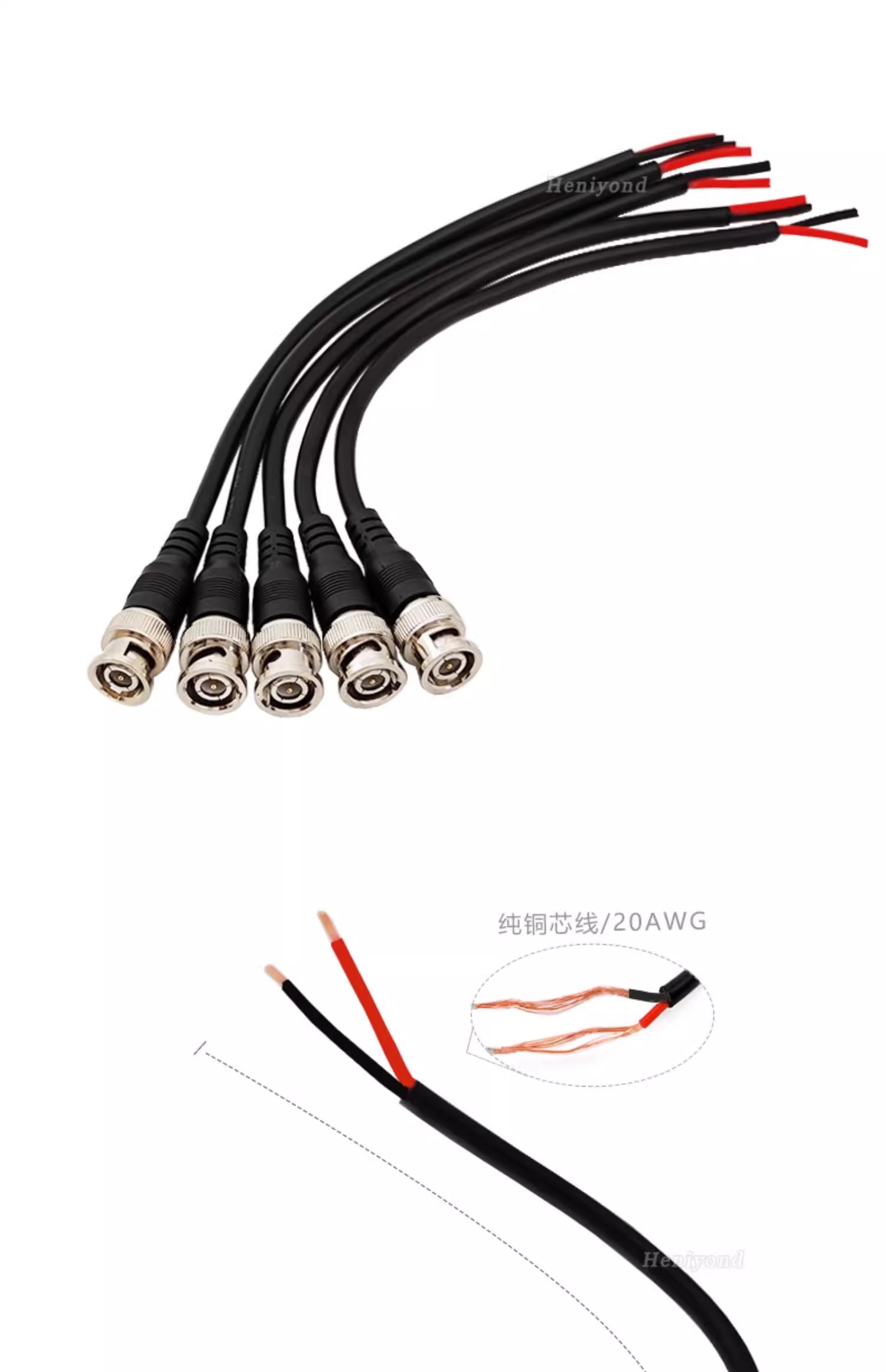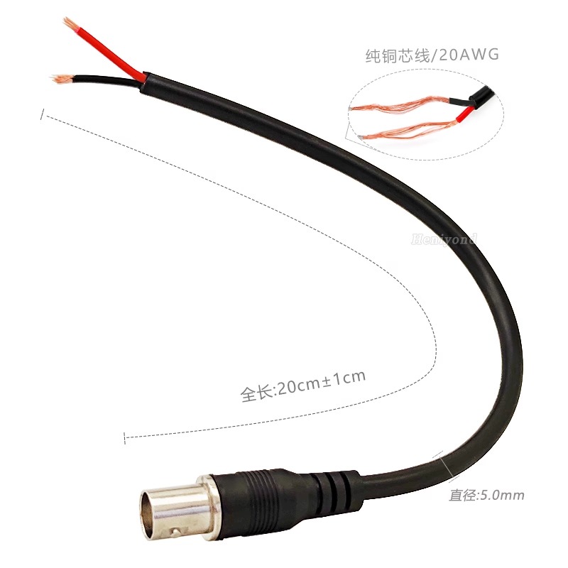 Heniyond 射频同轴连接器BNC型 母头 20厘米-0.5平方纯铜线 6条 1套