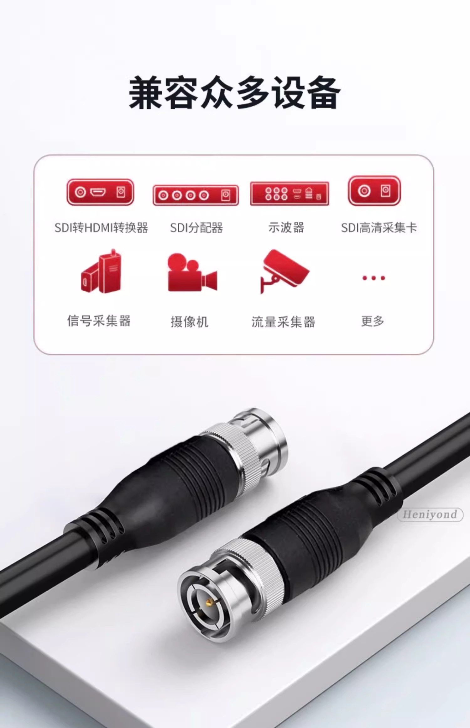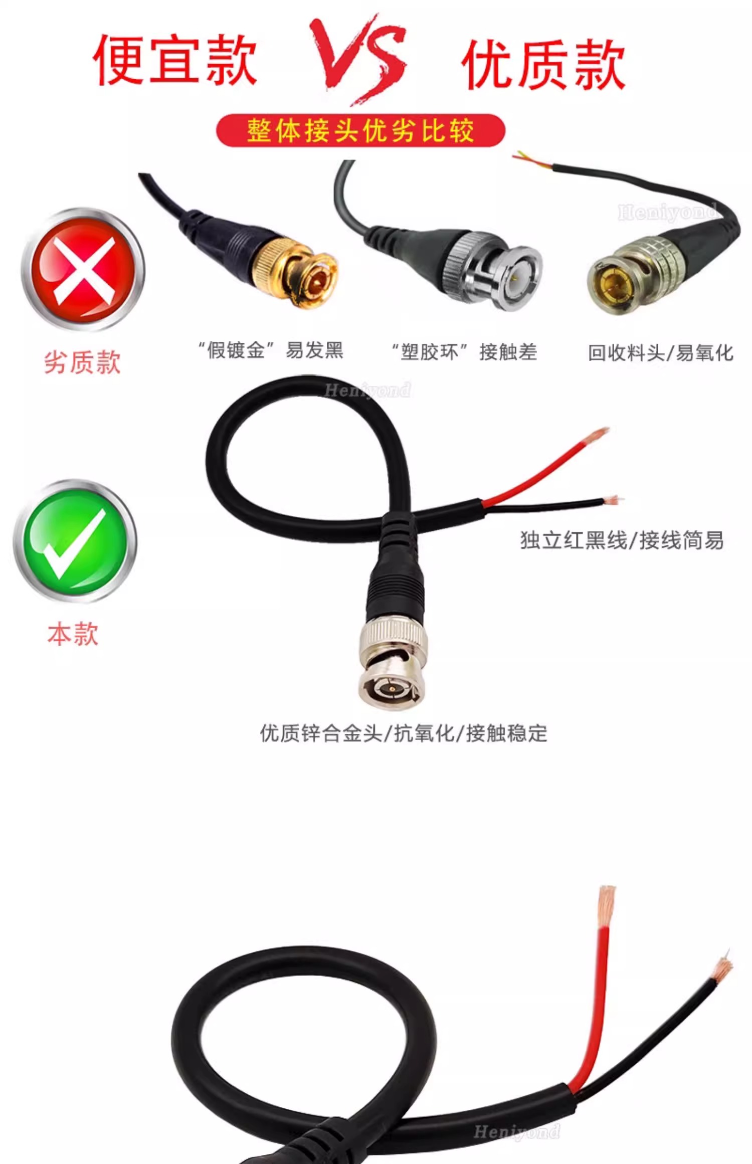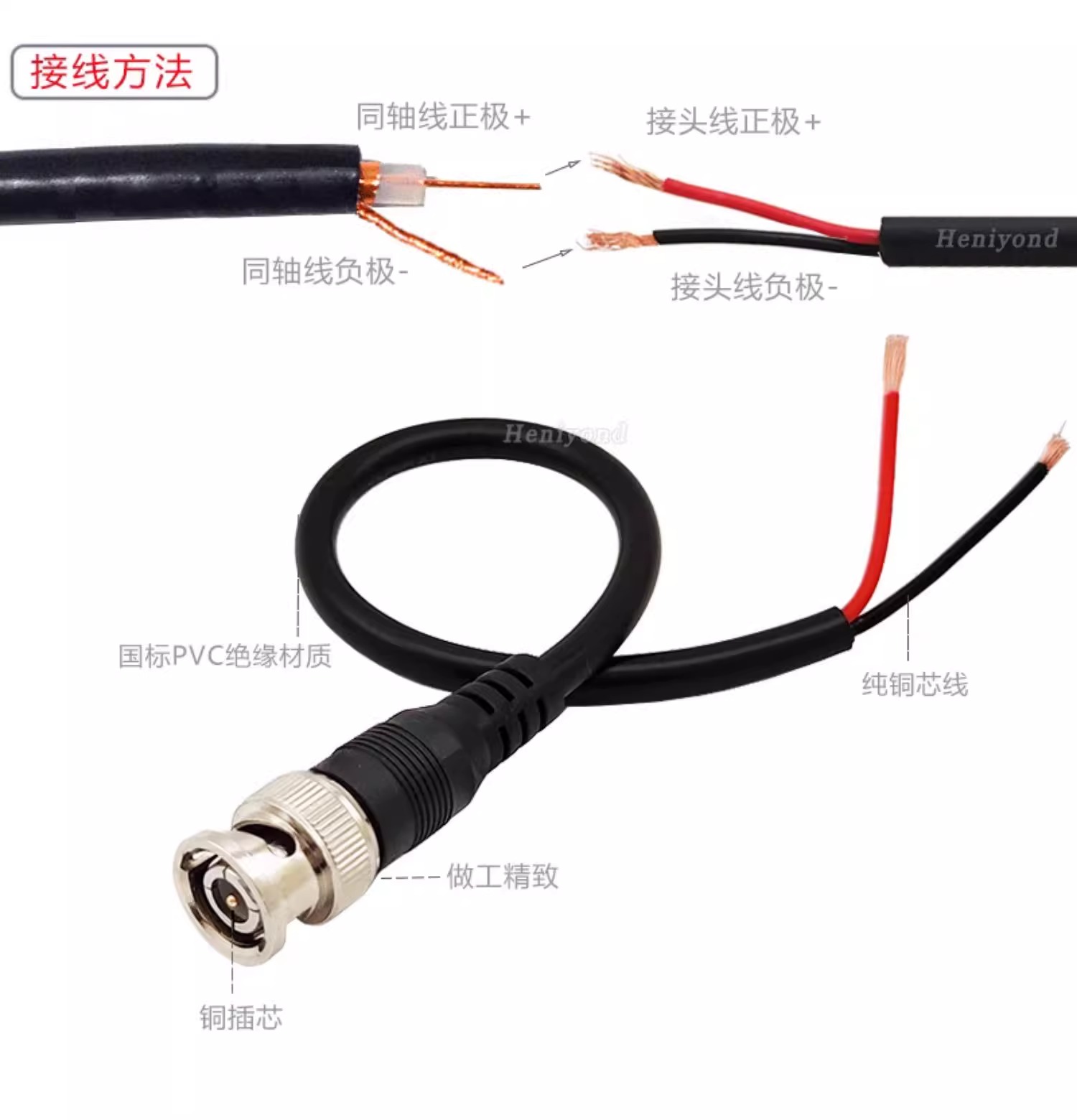 Heniyond 射频同轴连接器BNC型 母头 20厘米-0.5平方纯铜线 6条 1套