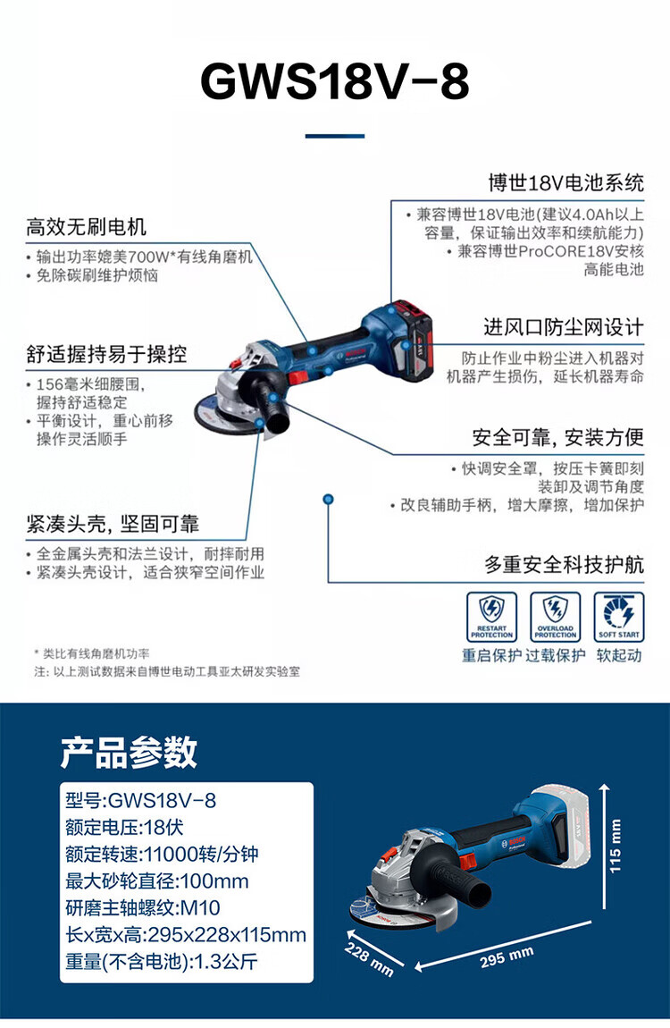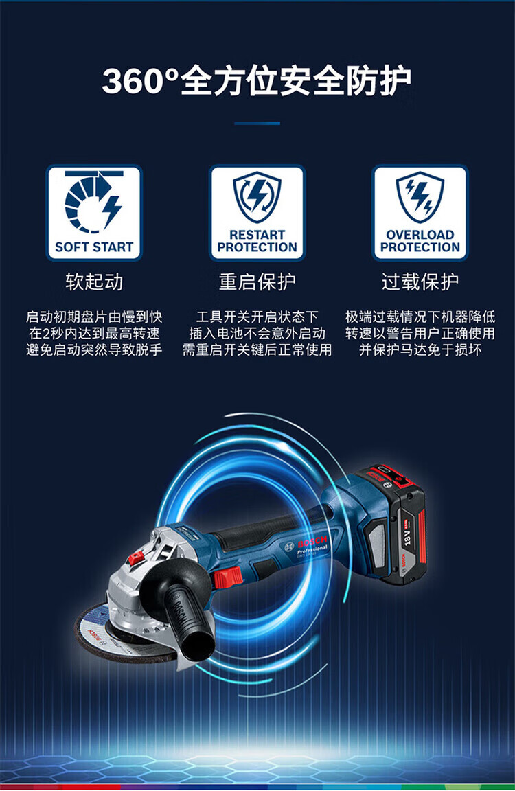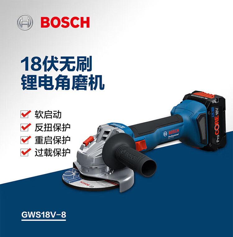 博世 充电式锂电角磨机 GWS-18V-8 18V 4Ah 两电一充 1套