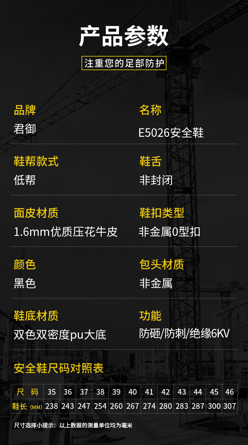 君御 绝缘6KV安全鞋 E5026 46码 黑色 1双