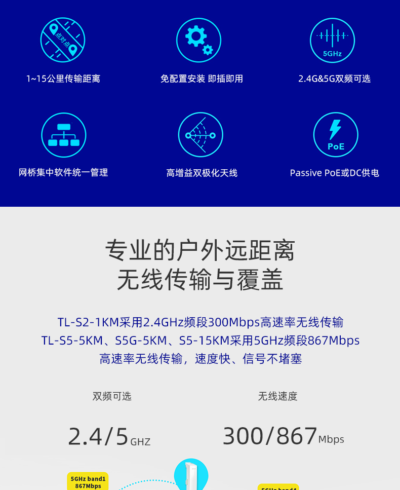 普联 无线网桥 TL-S2-1KM 塑料 300M 1公里传输 1套
