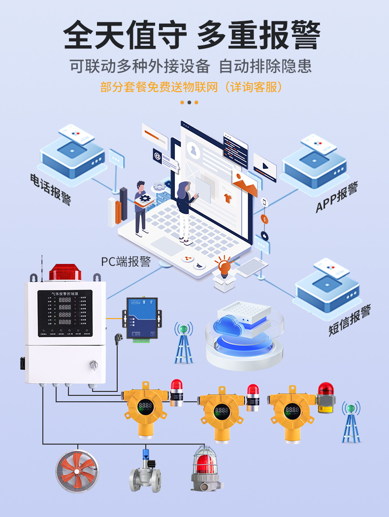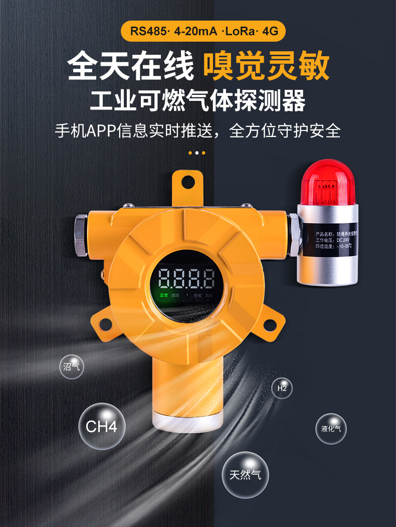 免布线:可燃数显声光探头+适配器