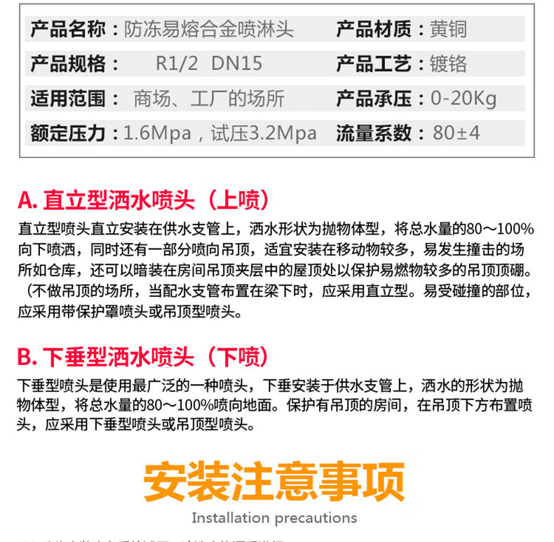泉航 消防喷淋头 Y-ZSTZ-57℃~77℃ DN15 易熔合金 上喷 1个