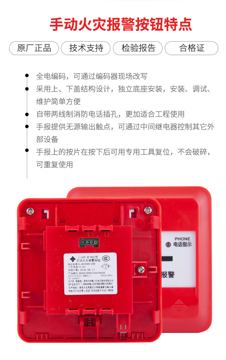 泛海三江 手动火灾报警器 J-SAP-M962 带底座 24VDC(脉冲调制) 1个