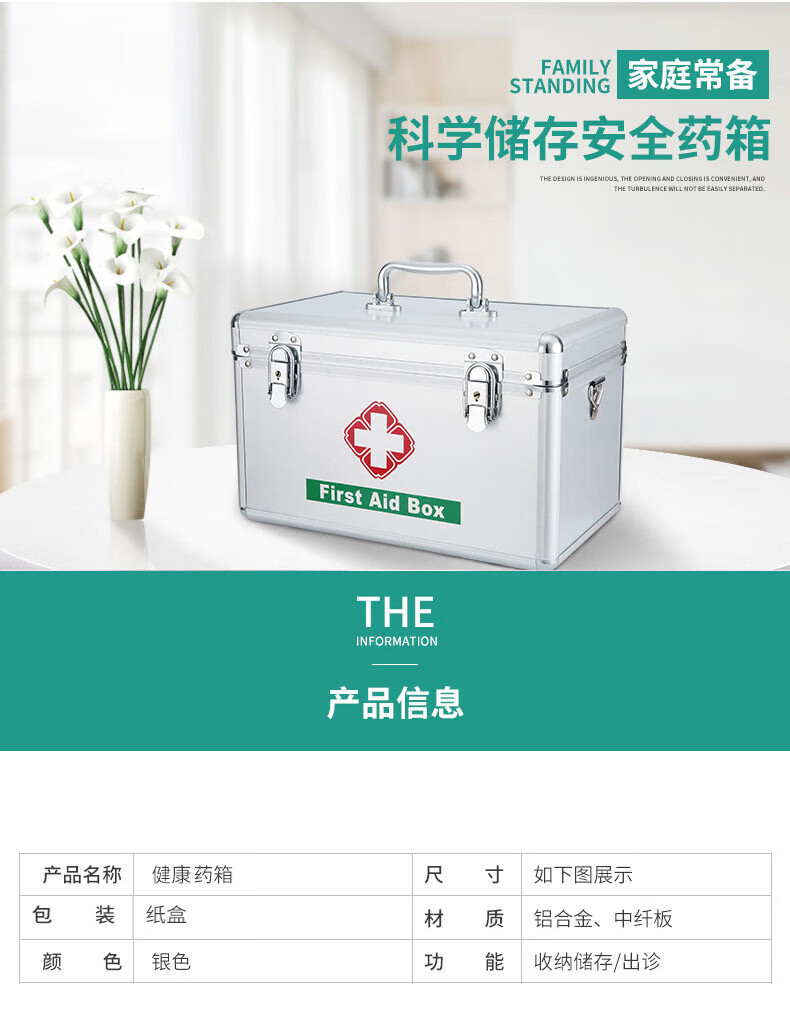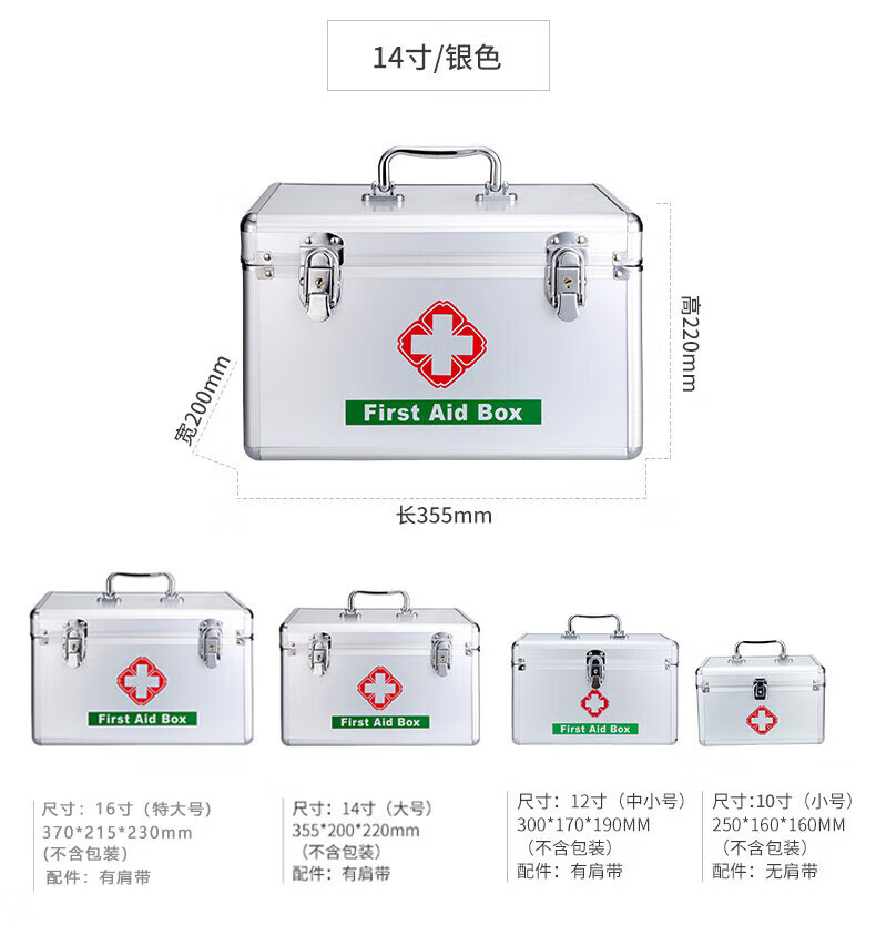 海斯迪克 消防急救药箱 含30种应急物品 铝合金框 14寸 1个