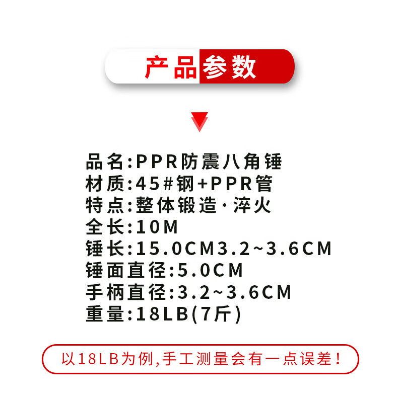 海斯迪克 消防锤 八角锤 弹性软把 10磅 1把