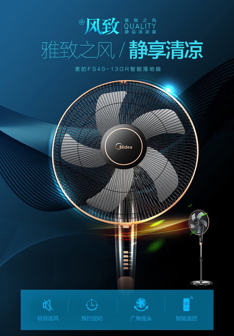 美的 落地扇 FS40-13GR 五叶 遥控定时 1台