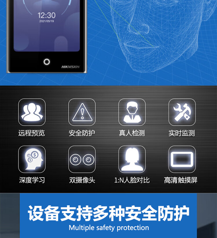 海康威视 人脸识别门禁系统一体机 DS-K1T673TMW 人脸100000+卡500000 1个