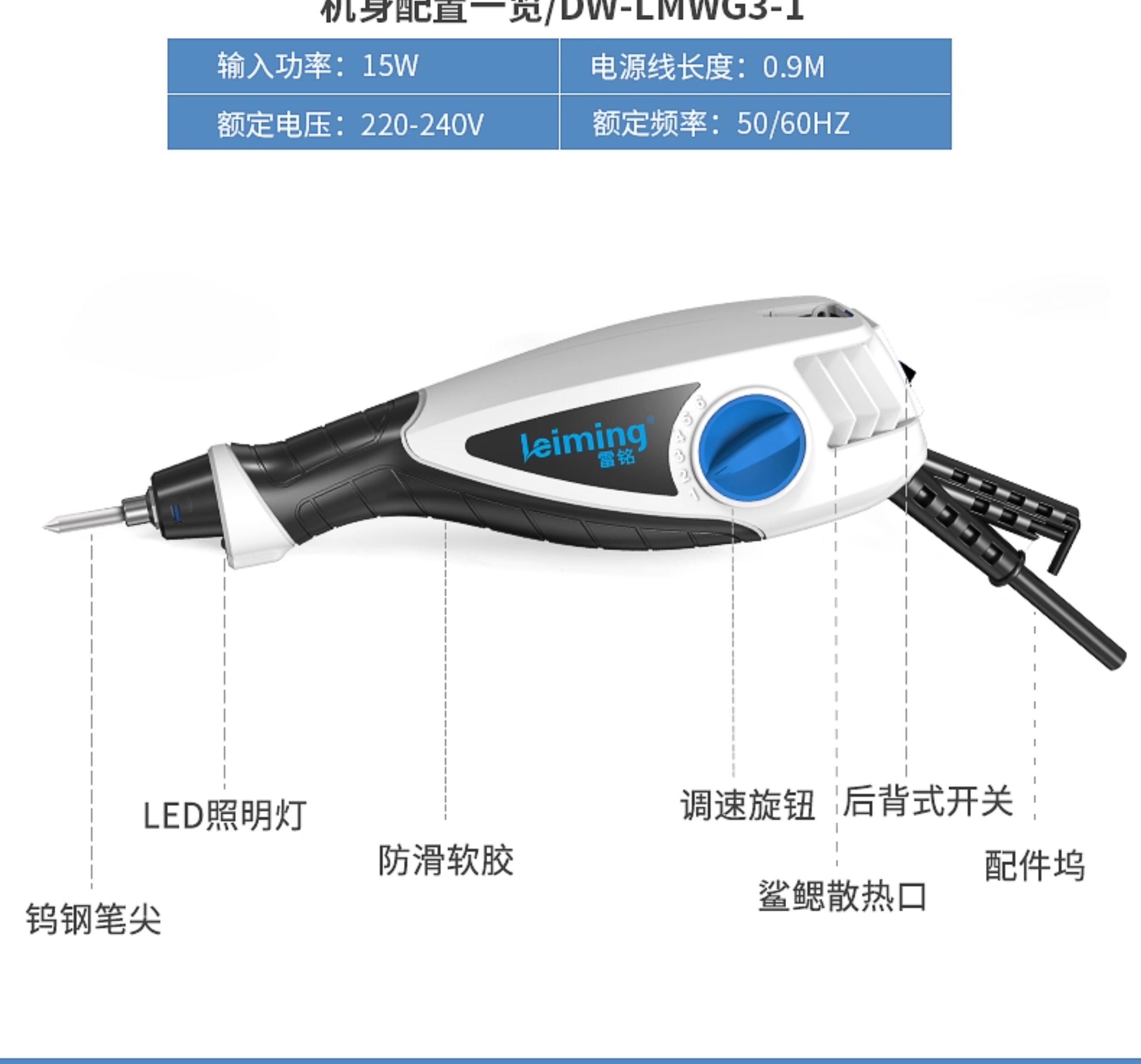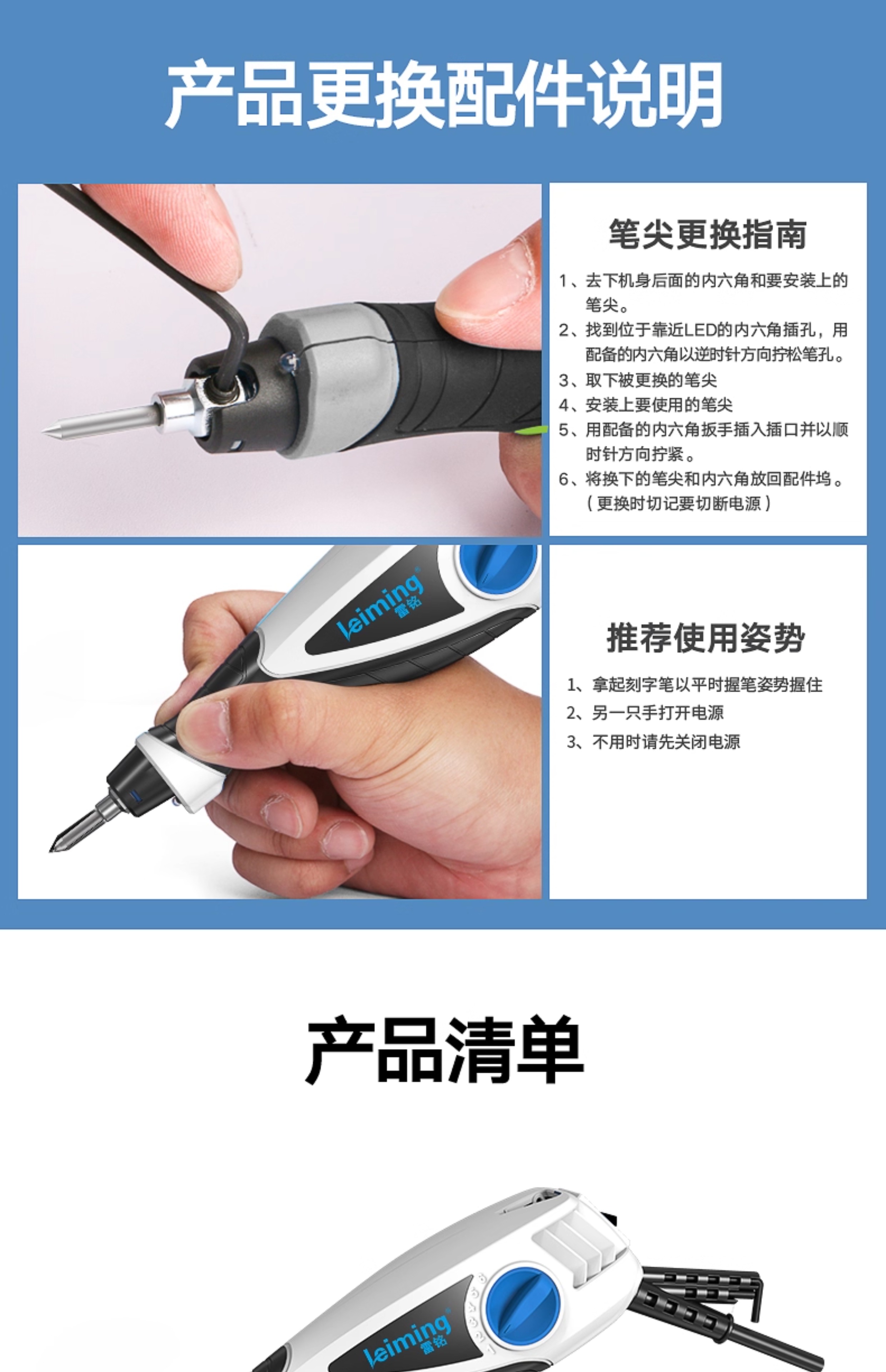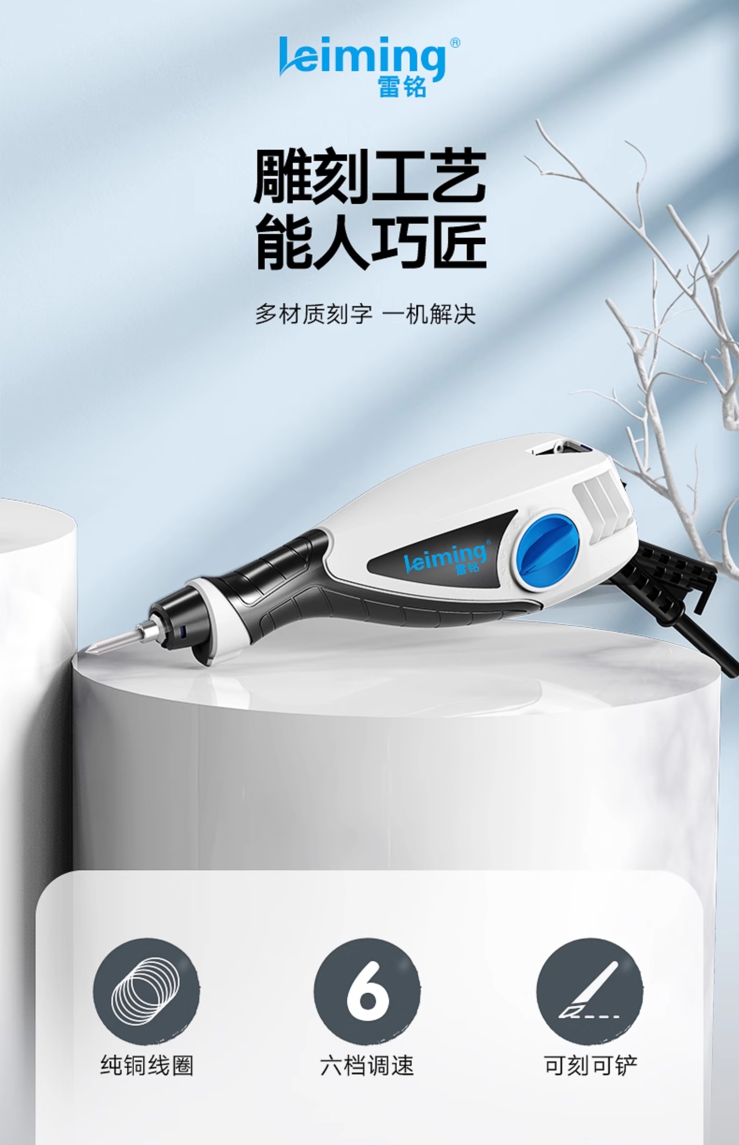 雷铭 升级版小型电动雕刻笔 蓝机套餐三(工具箱+1根刻针+1根刻针+1根铲针+防噪耳塞) 1套