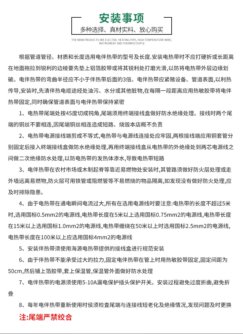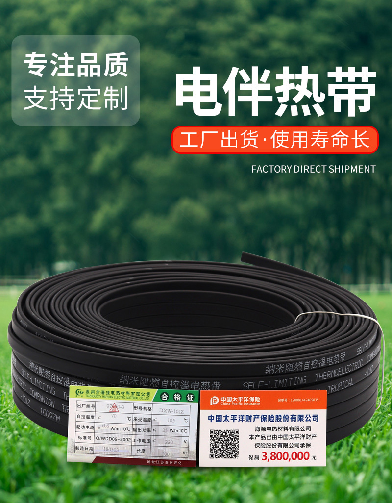 海源双佳 管道防冻电伴热带 12mm加热带 30m 1盘